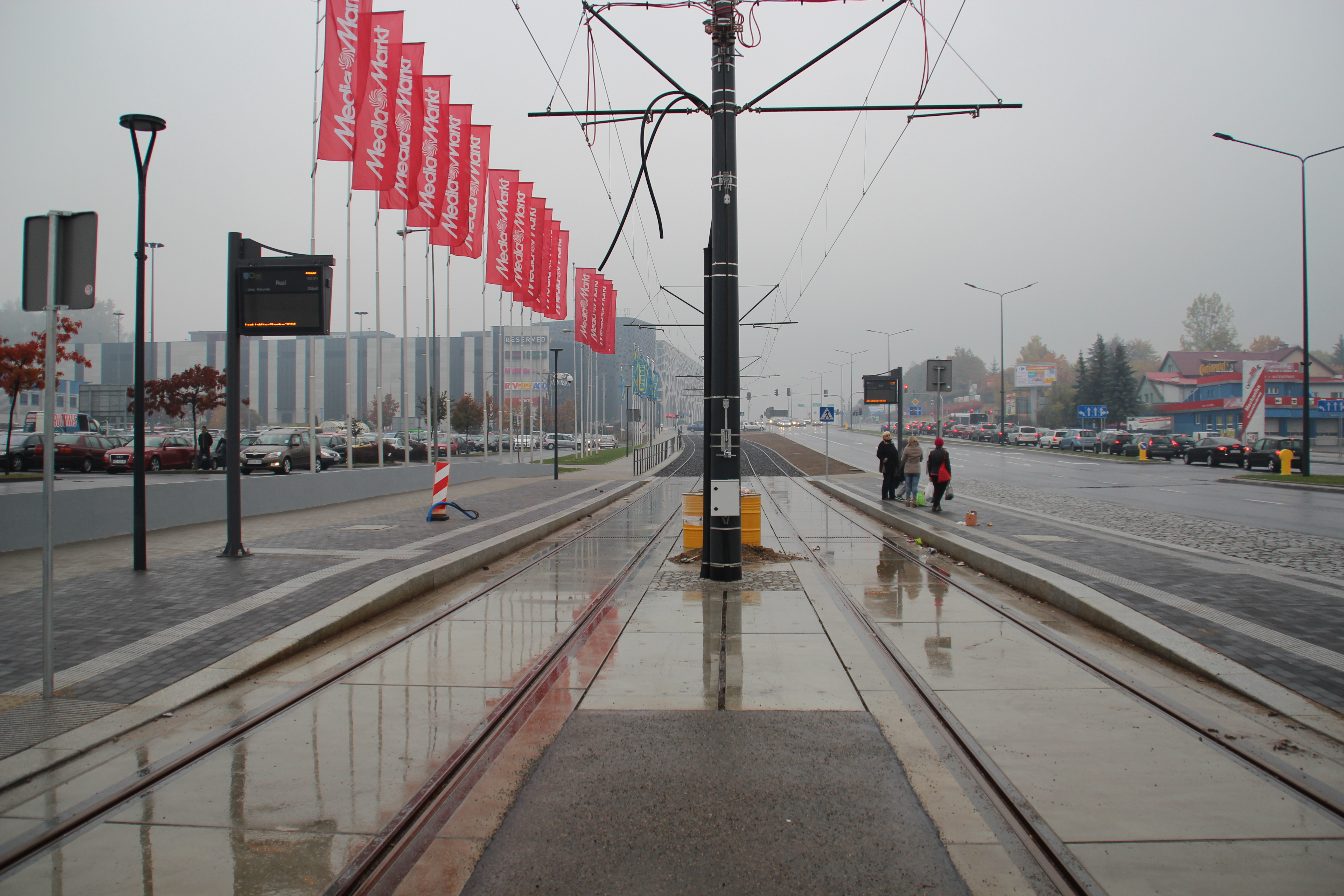 Budowa linii tramwajowej przy alei Sikorskiego (18 października 2015) – przystanek Real © OlsztyńskieTramwaje.pl