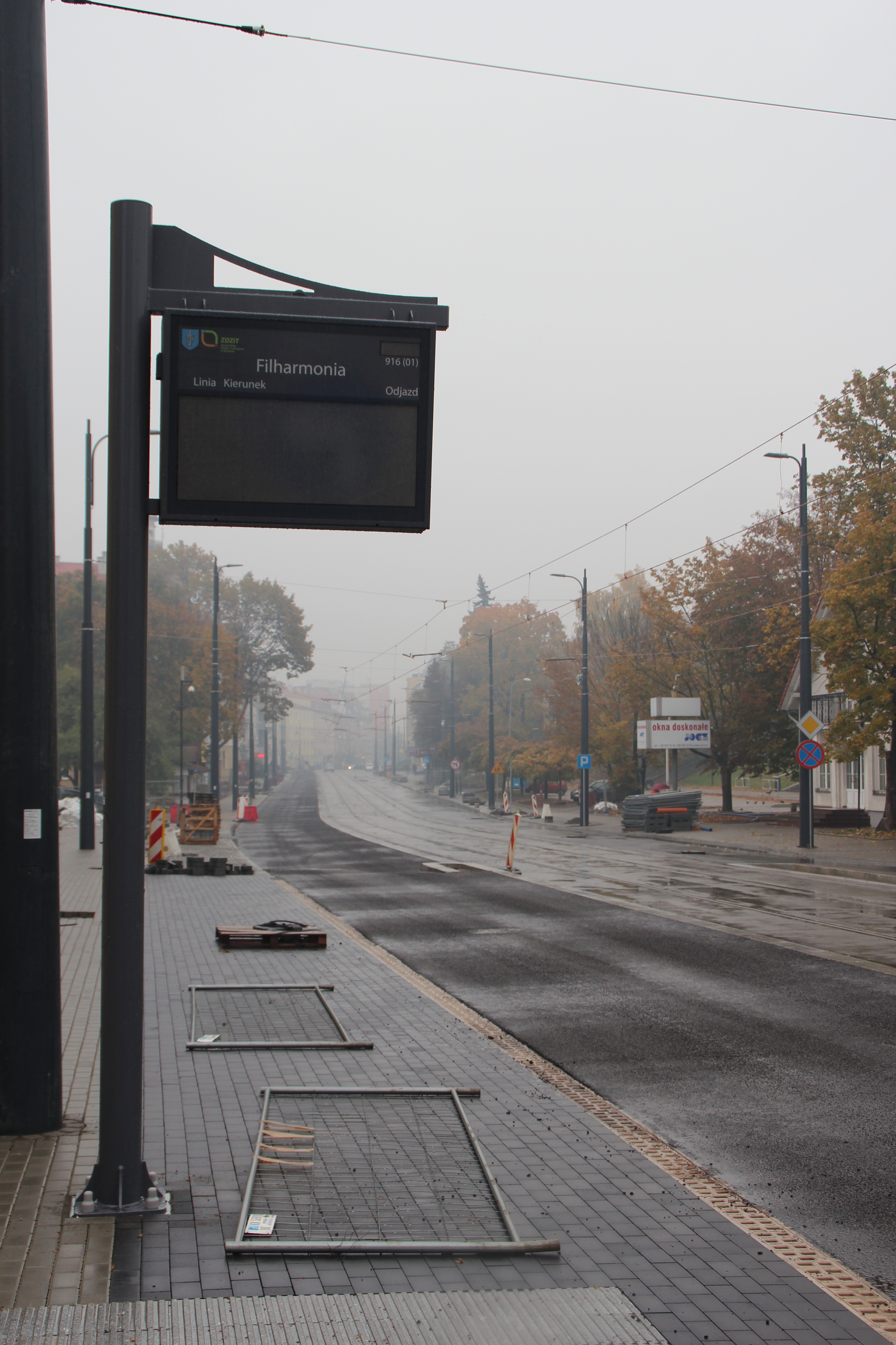 Budowa linii tramwajowej w ulicy Kościuszki (18 października 2015) – przystanek wiedeński Filharmonia © OlsztyńskieTramwaje.pl