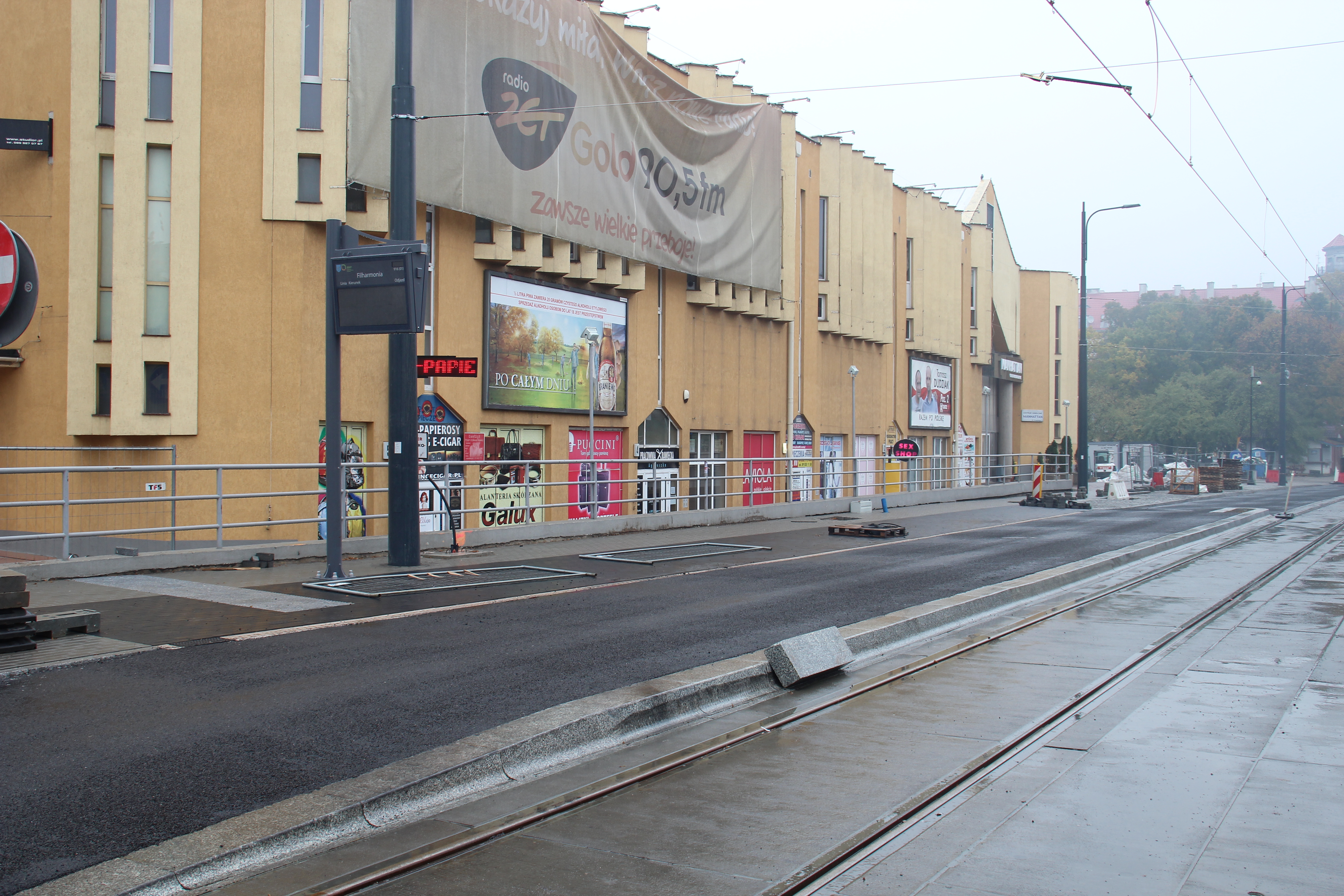 Budowa linii tramwajowej w ulicy Kościuszki (18 października 2015) – przystanek wiedeński Filharmonia © OlsztyńskieTramwaje.pl