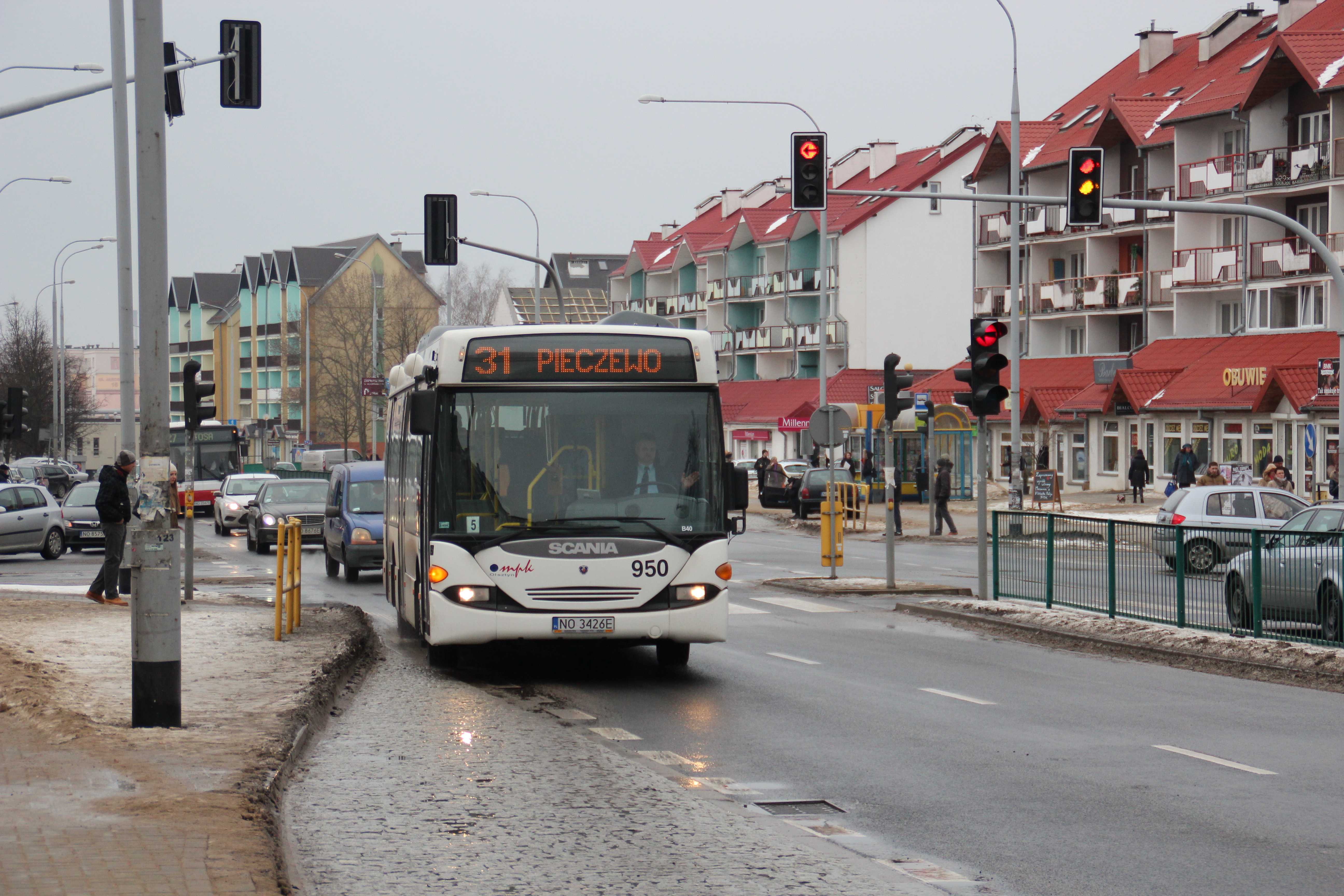 Scania OmniLink CL9 #950 na linii 31 wjeżdża na przystanek D.H. Śliwa (7 lutego 2014) © OlsztyńskieTramwaje.pl