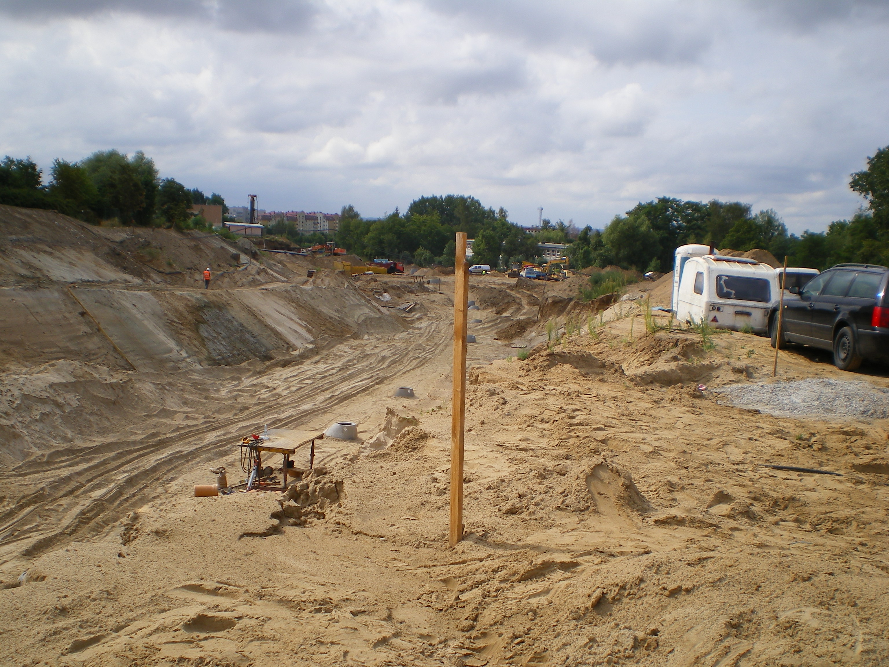 Budowa ulicy Obiegowej przy skrzyżowaniu z Żołnierską (7 sierpnia 2014) © OlsztyńskieTramwaje.pl