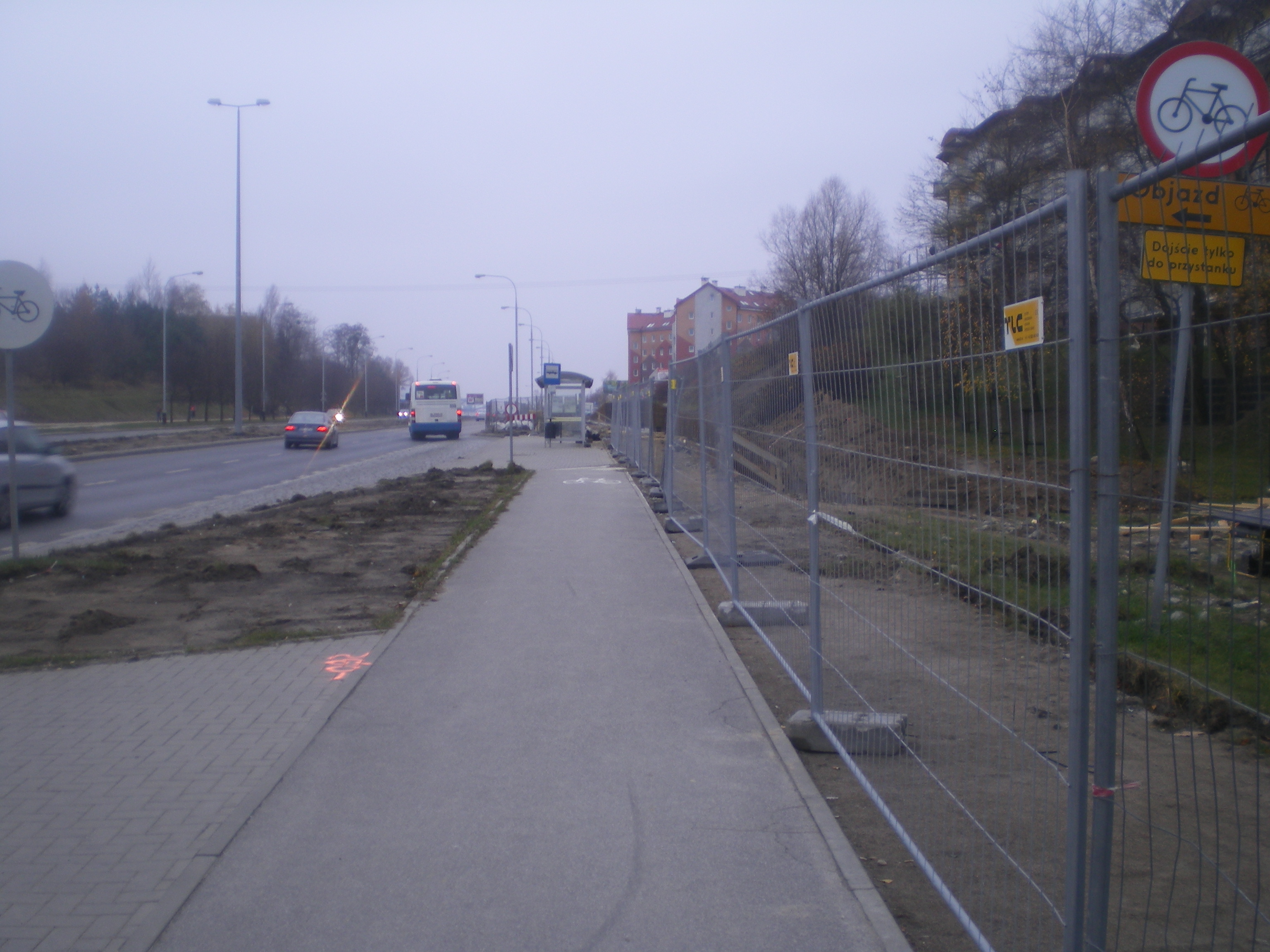 Budowa linii tramwajowej przy alei Sikorskiego – okolice skrzyżowania z ulicą Minakowskiego (16 listopada 2014) © OlsztyńskieTramwaje.pl