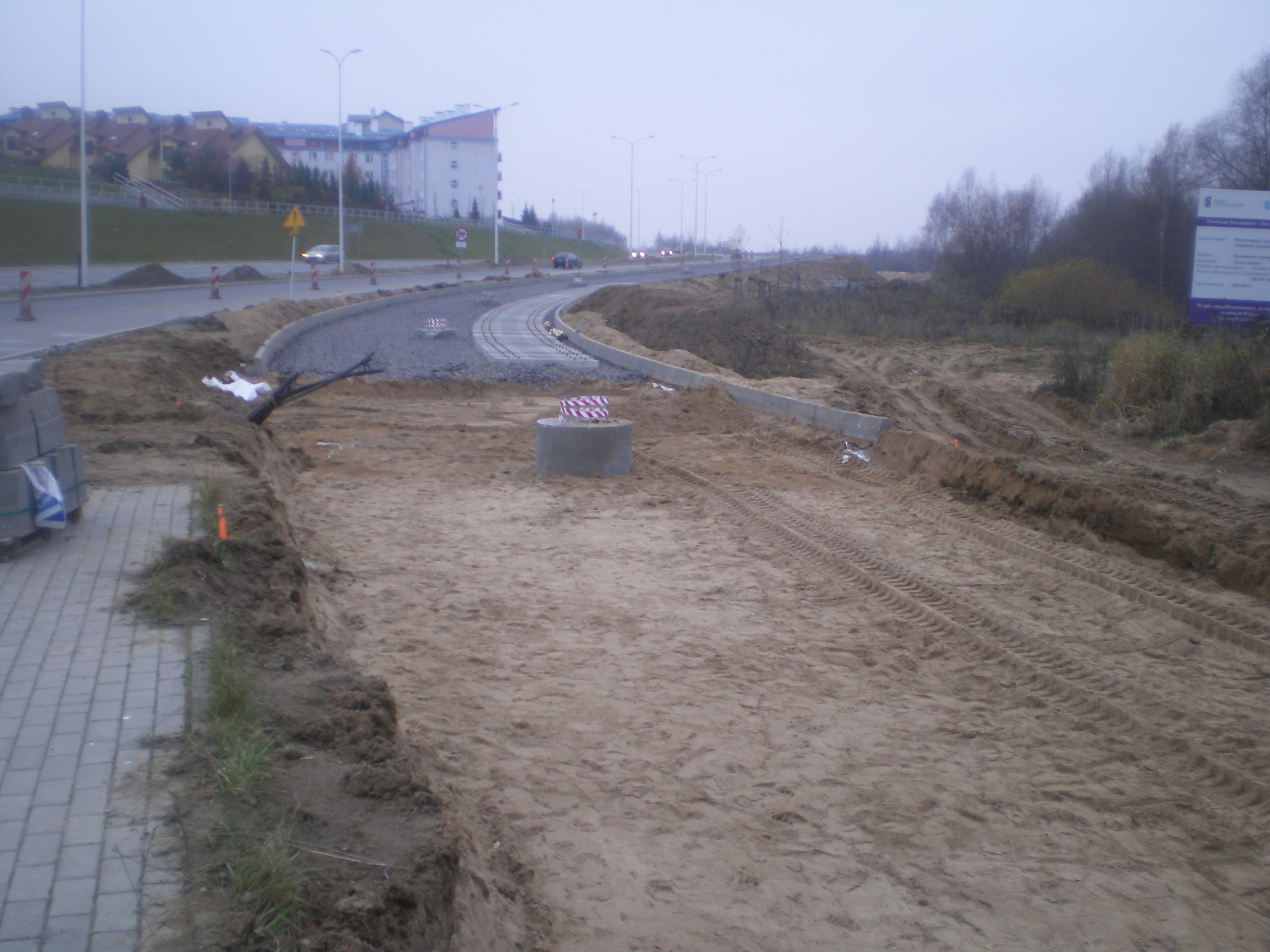 Budowa linii tramwajowej przy ulicy Płoskiego (16 listopada 2014)