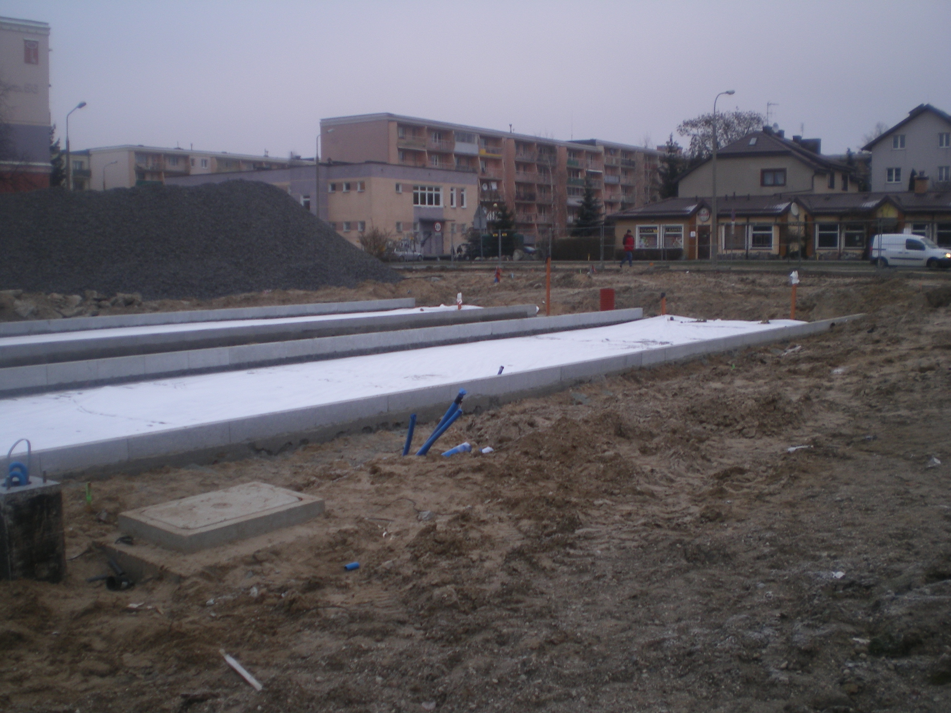 Izolacja pod przyszłe tory odstawcze przystanku końcowego u zbiegu ulic Witosa i Kanta (30 listopada 2014) © OlsztyńskieTramwaje.pl