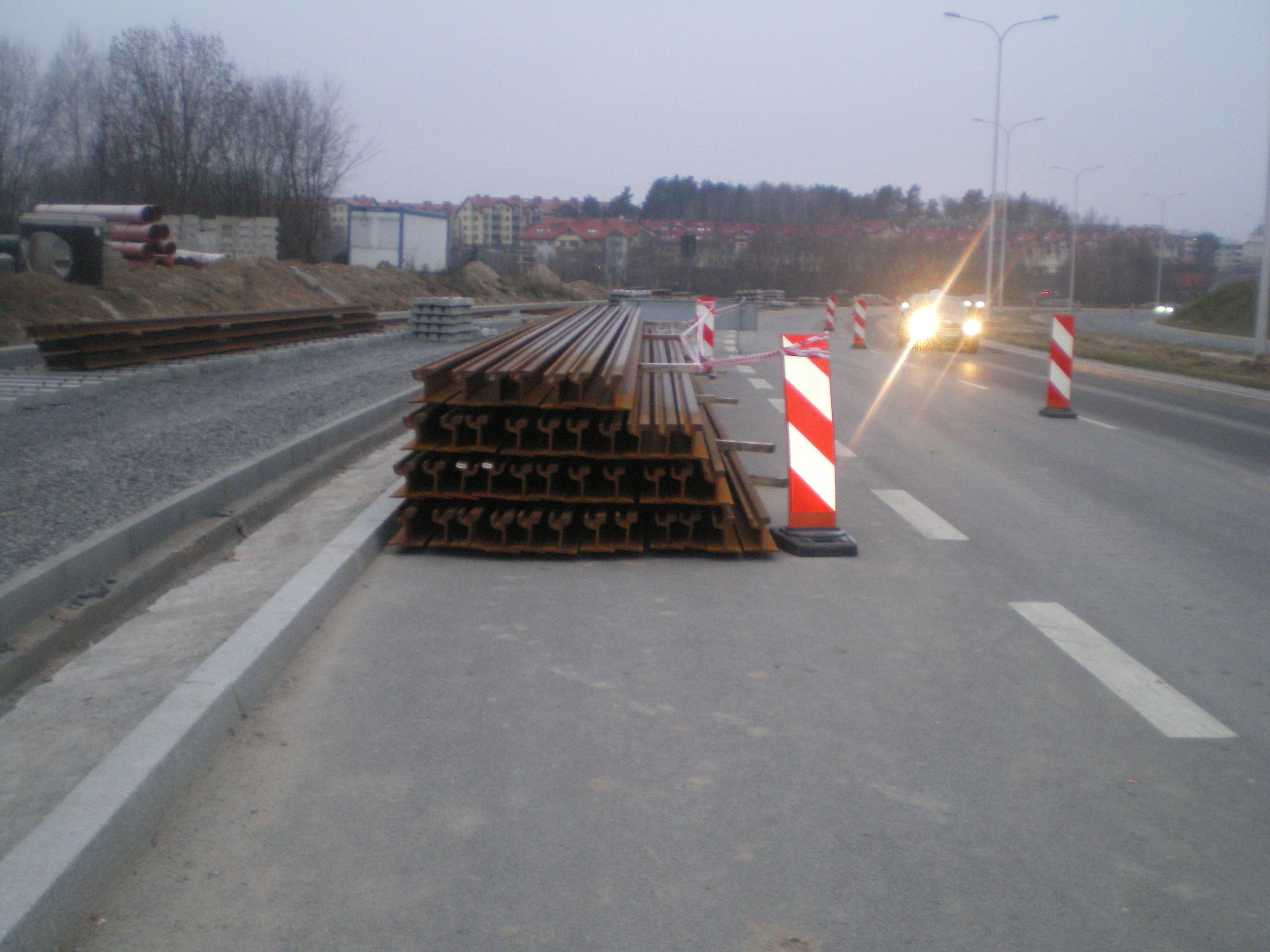 Szyny oczekujące na ułożenie na torowisku przy ulicy Płoskiego (30 listopada 2014) © OlsztyńskieTramwaje.pl