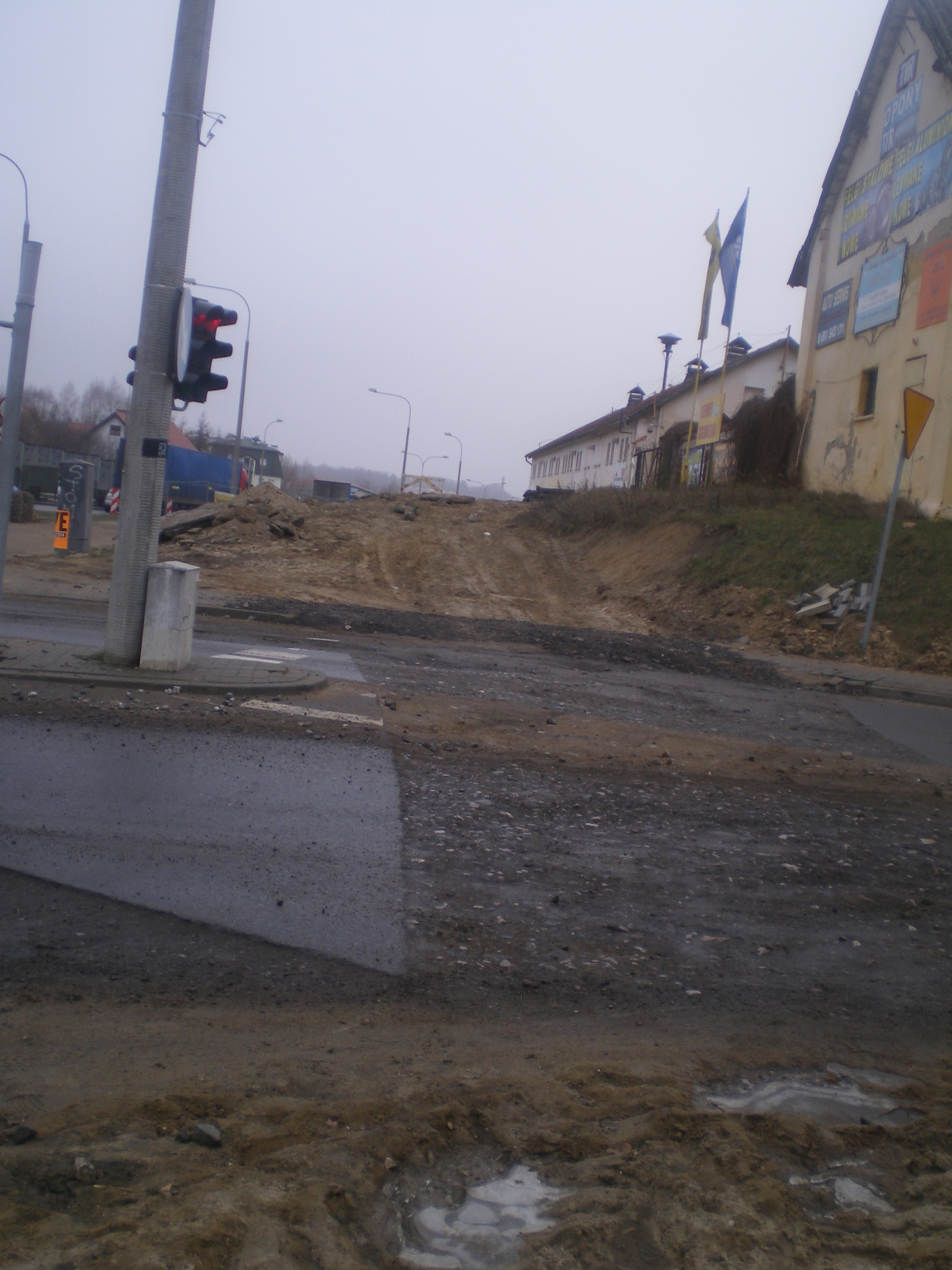 W tym miejscu torowisko biegnące wzdłuż ulicy Tuwima przetnie ulicę Nowaka (7 grudnia 2014) © OlsztyńskieTramwaje.pl