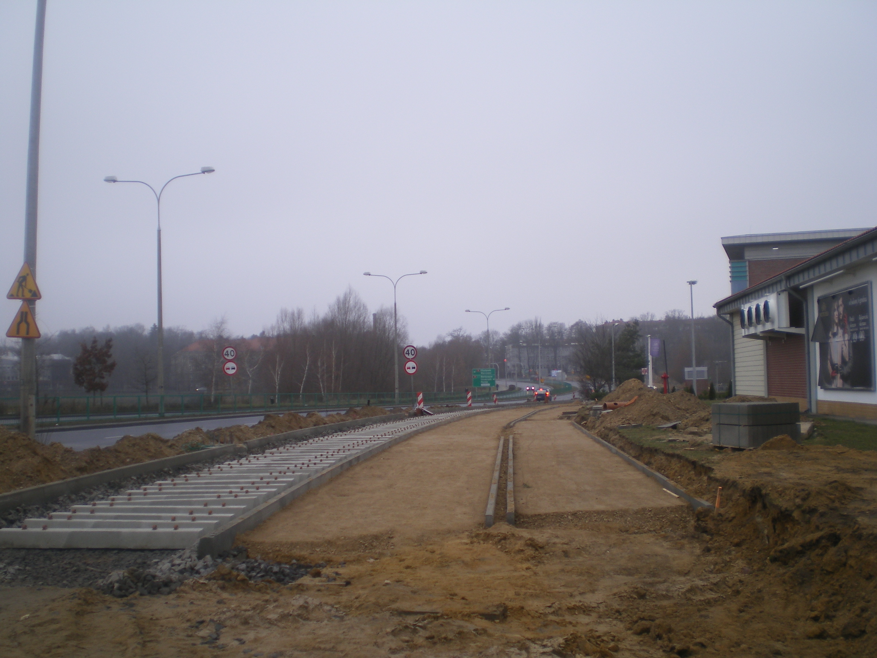 Budowa linii tramwajowej przy ulicy Tuwima, w pobliżu skrzyżowania z ulicą Iwaszkiewicza (7 grudnia 2014) © OlsztyńskieTramwaje.pl