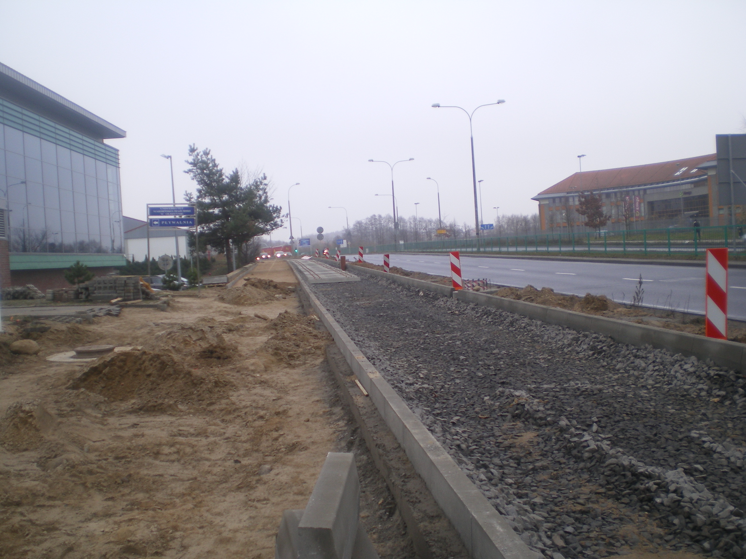 Budowa linii tramwajowej przy ulicy Tuwima na wysokości basenu uniwersyteckiego (7 grudnia 2014) © OlsztyńskieTramwaje.pl