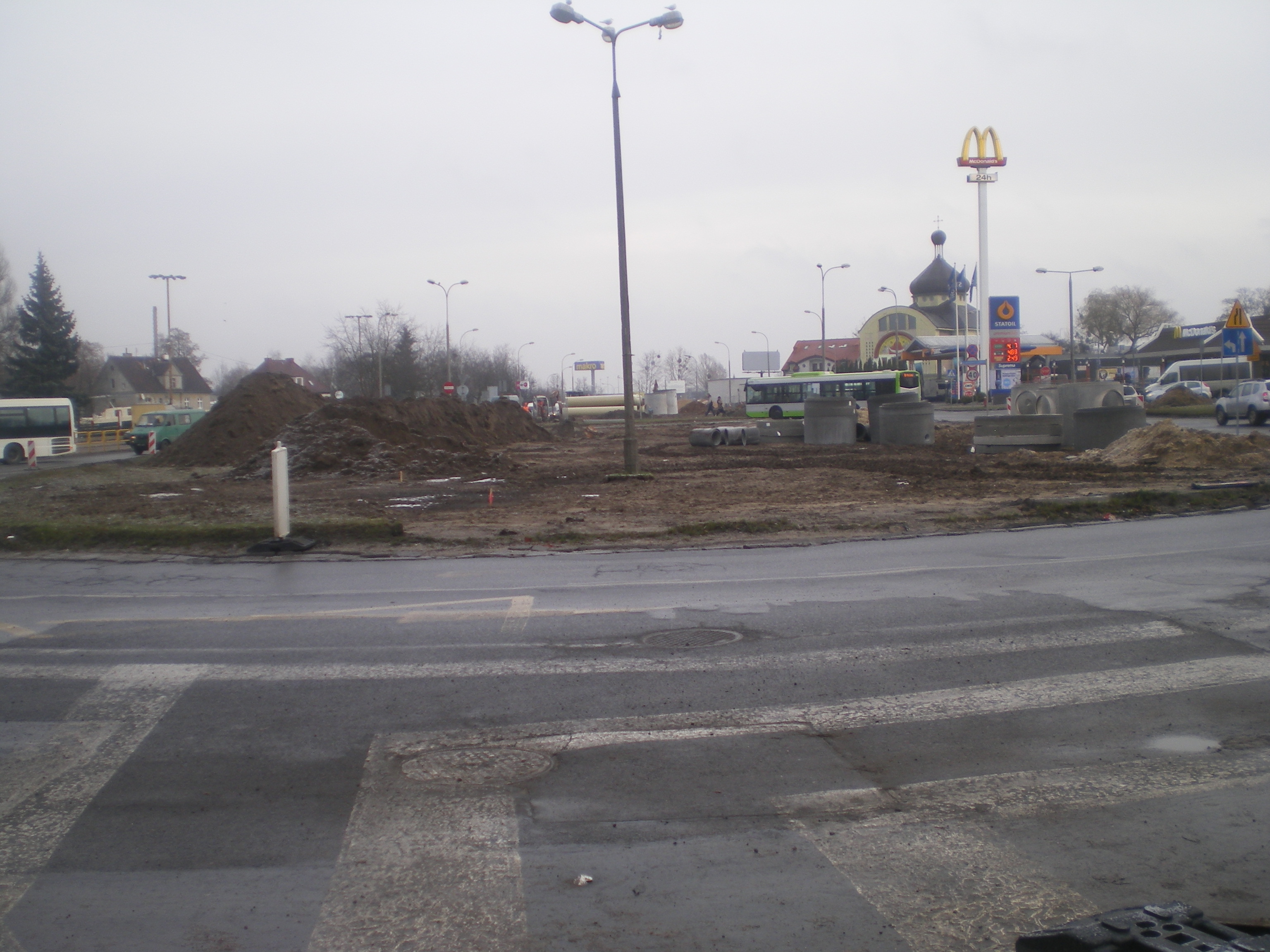 Przystanek końcowy tramwaju Dworzec Główny powstanie na centralnej wyspie ronda na placu Konstytucji 3 Maja (10 grudnia 2014) © OlsztyńskieTramwaje.pl