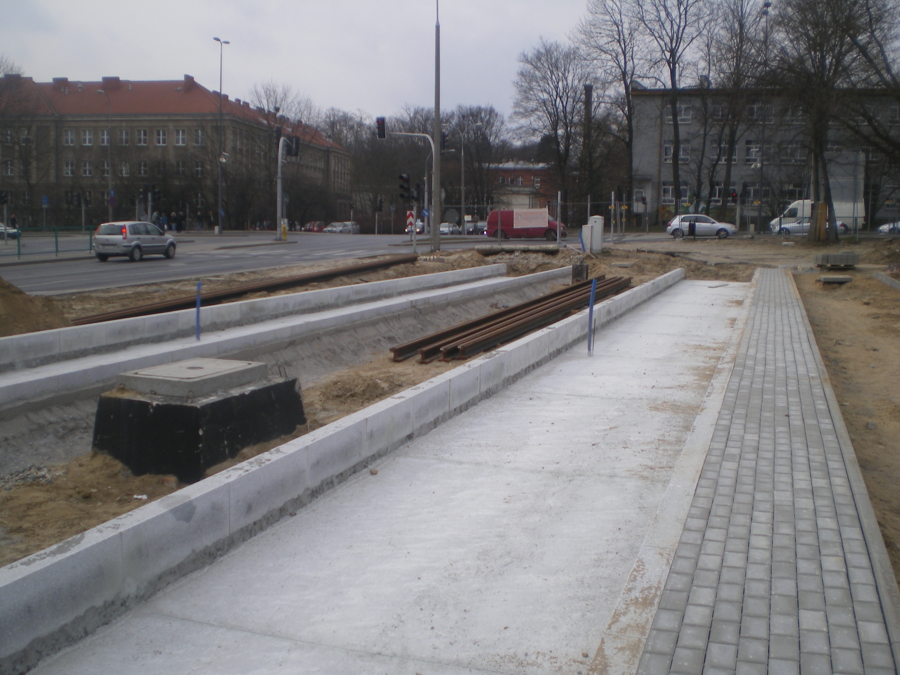 Budowa linii tramwajowej przy ulicy Tuwima (21 marca 2015) – przystanek końcowy przy skrzyżowaniu z aleją Warszawską i ulicą Prawocheńskiego © OlsztyńskieTramwaje.pl