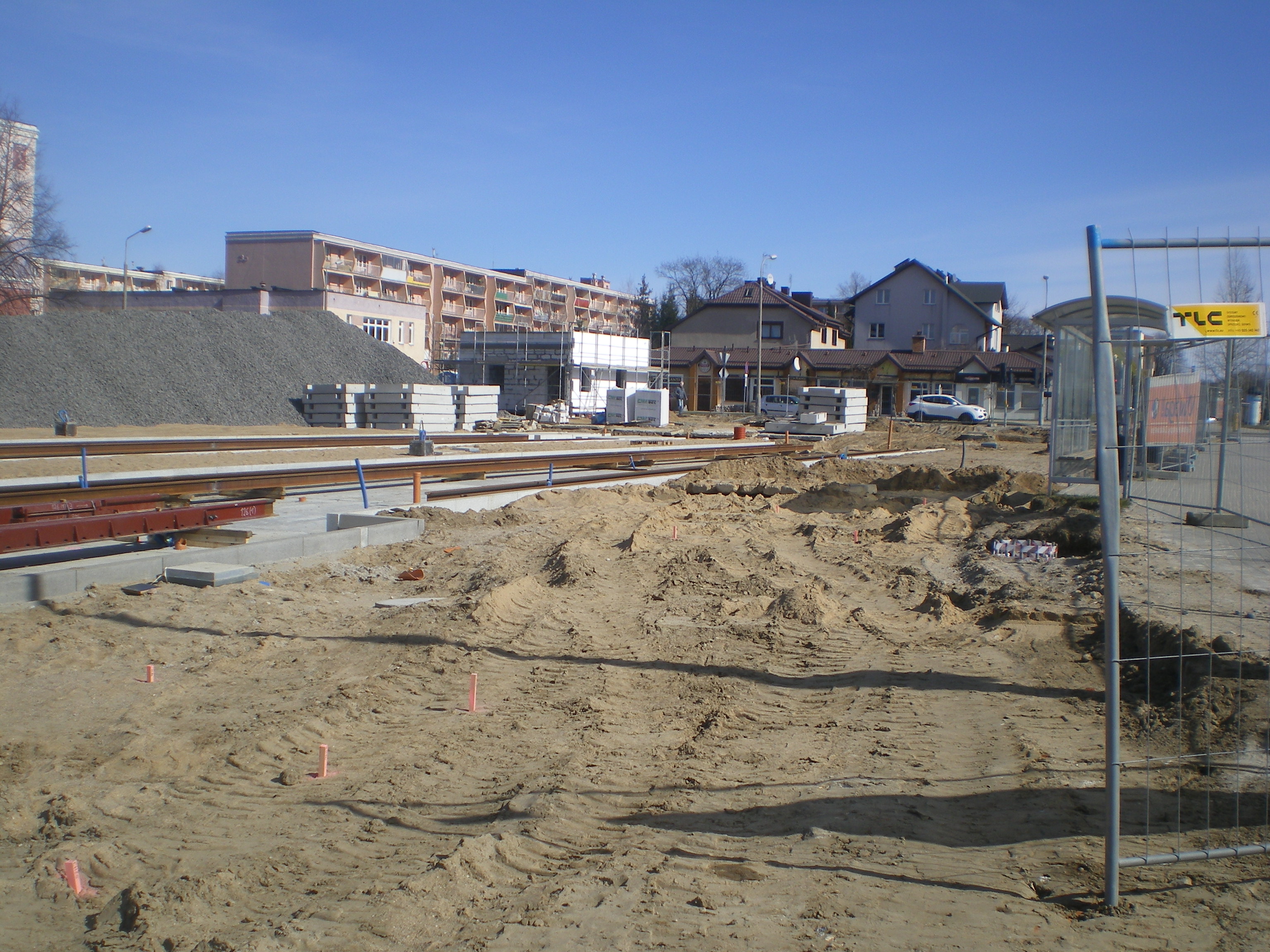 Budowa linii tramwajowej przy ulicy Witosa (22 marca 2015) – przystanek końcowy przy skrzyżowaniu z ulicą Kanta © OlsztyńskieTramwaje.pl