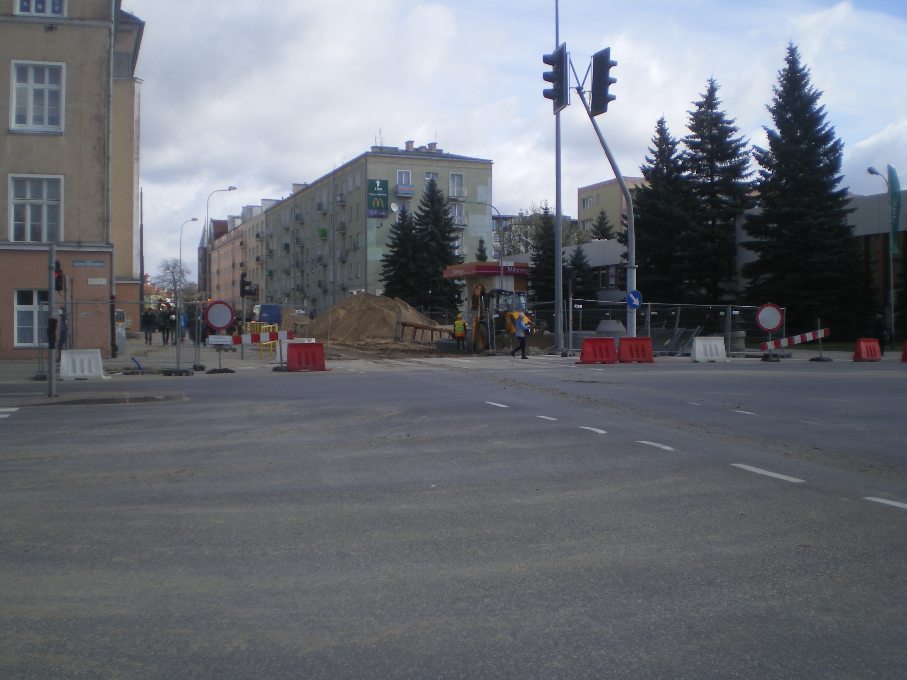 Budowa linii tramwajowej w ulicy Kościuszki (16 kwietnia 2015) © OlsztyńskieTramwaje.pl