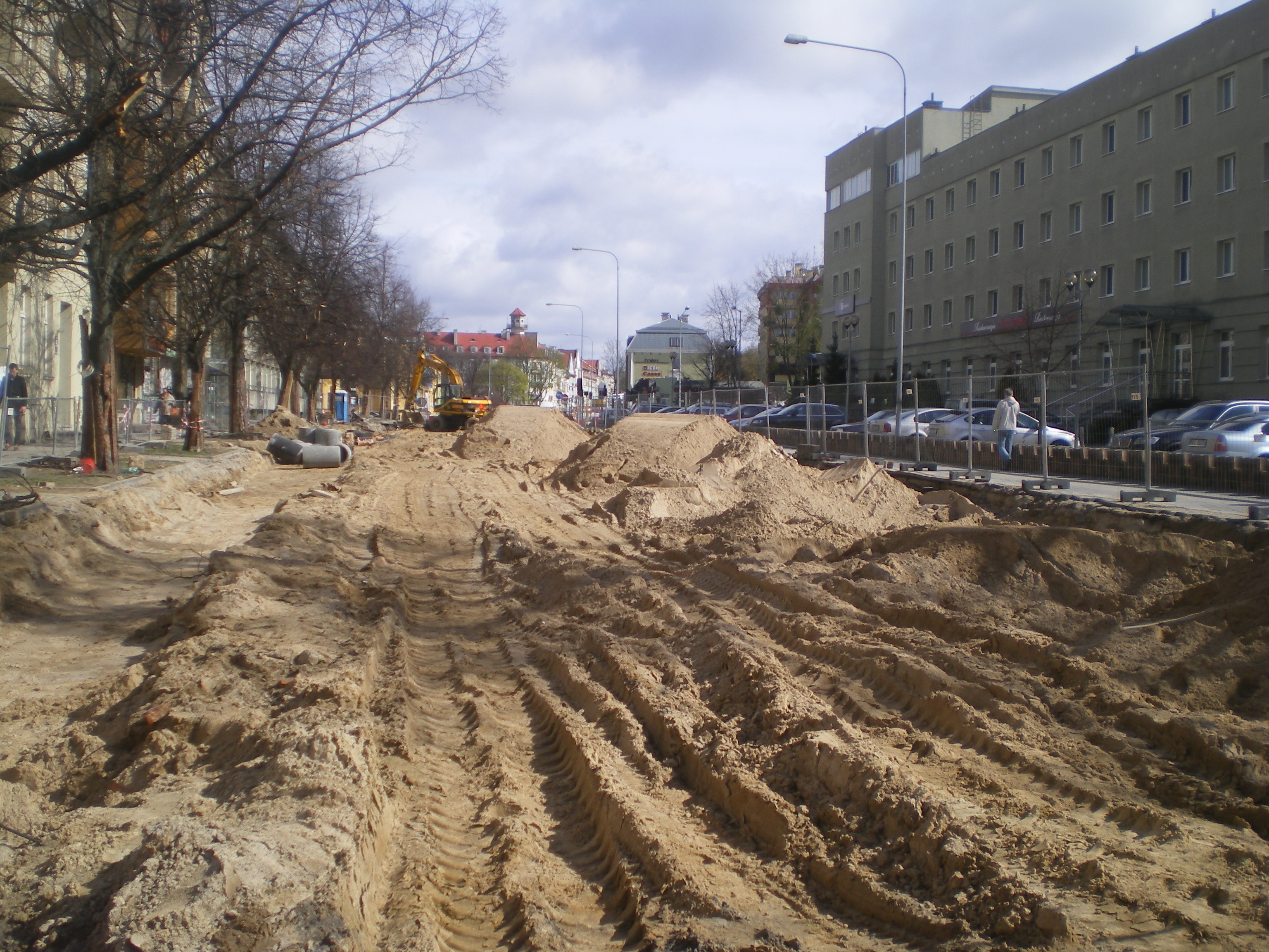 Budowa linii tramwajowej w ulicy Kościuszki (16 kwietnia 2015) © OlsztyńskieTramwaje.pl