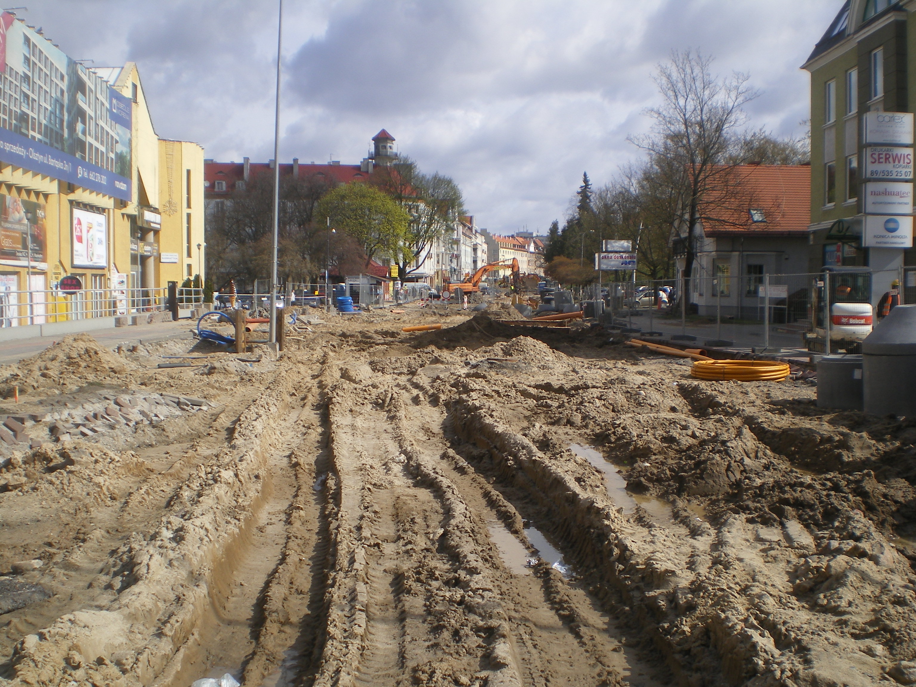 Budowa linii tramwajowej w ulicy Kościuszki (16 kwietnia 2015) © OlsztyńskieTramwaje.pl