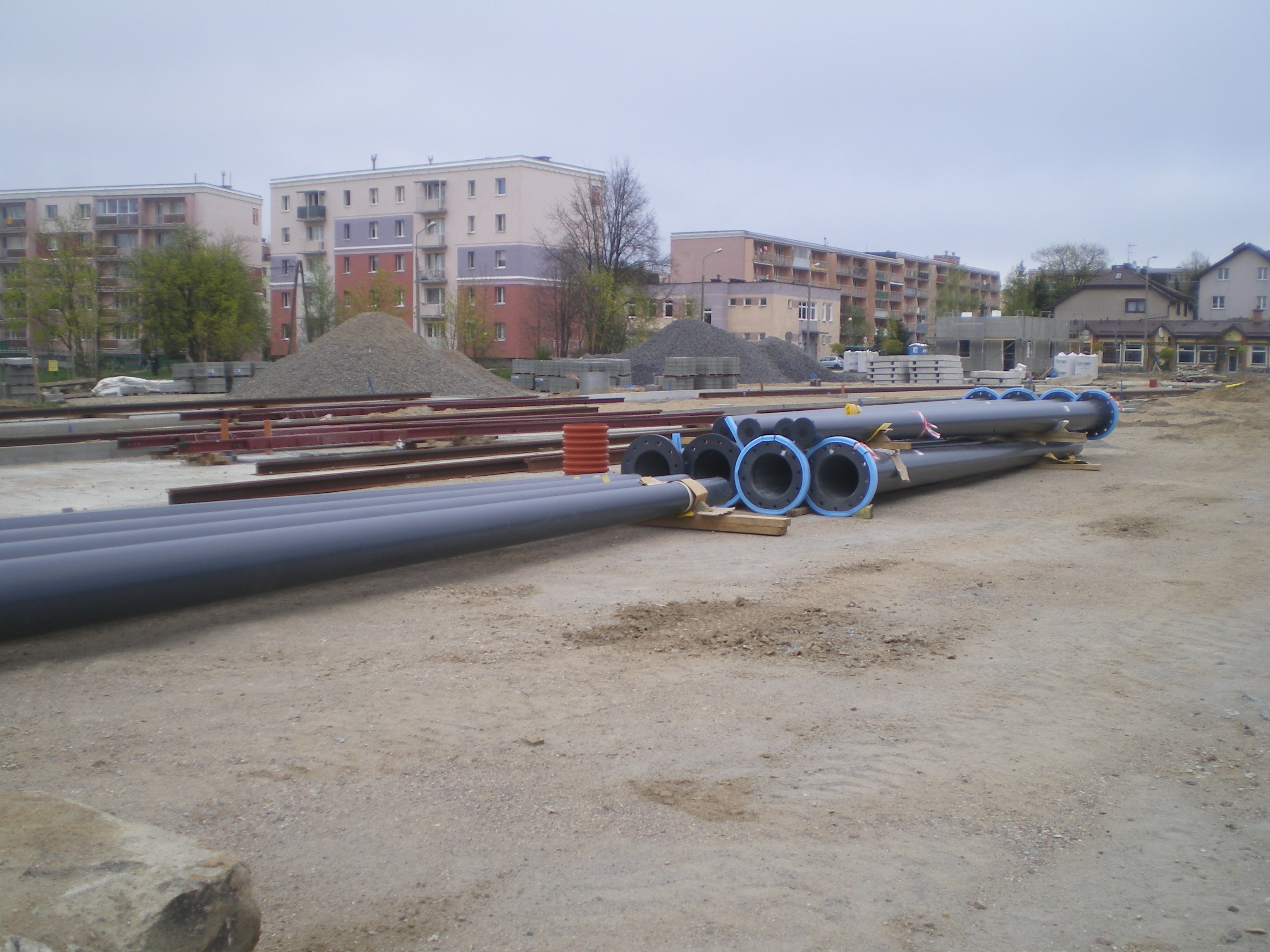 Budowa linii tramwajowej przy ulicy Witosa (28 kwietnia 2015) – przystanek końcowy przy skrzyżowaniu z ulicą Kanta © OlsztyńskieTramwaje.pl