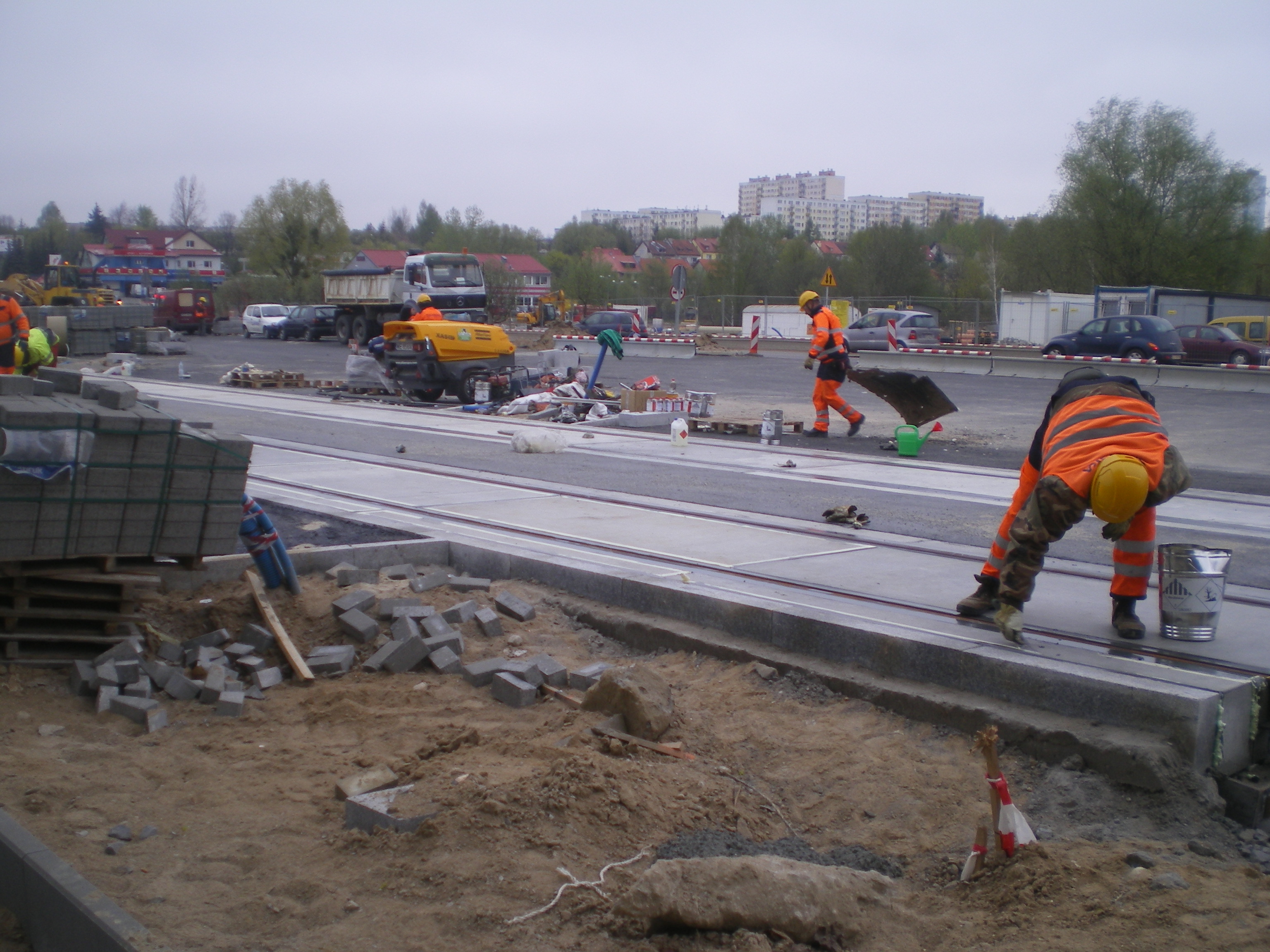 Budowa linii tramwajowej przy alei Sikorskiego (28 kwietnia 2015)