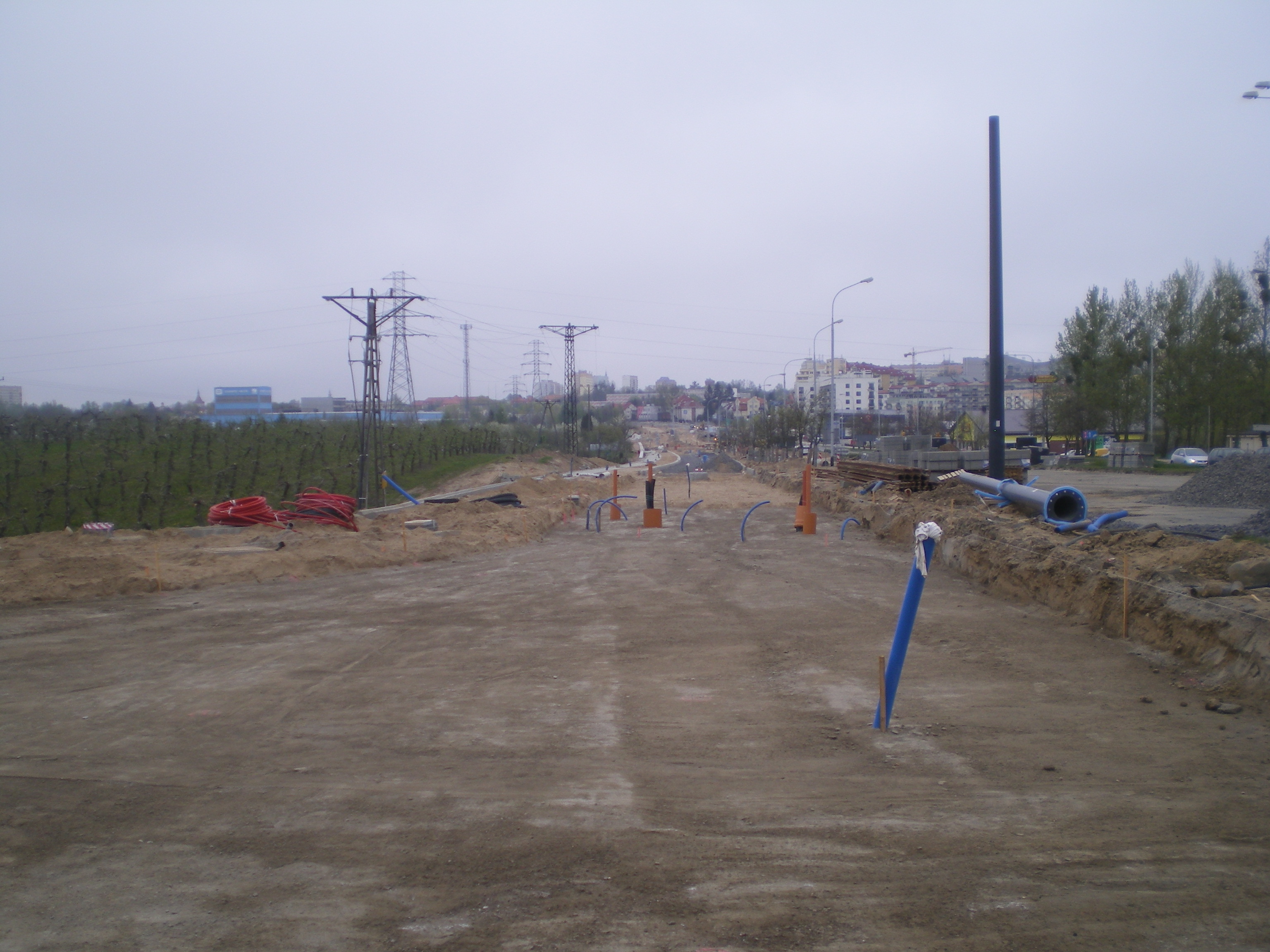 Budowa linii tramwajowej przy alei Sikorskiego przy skrzyżowaniu z ulicami Tuwima i Synów Pułku (28 kwietnia 2015) © OlsztyńskieTramwaje.pl