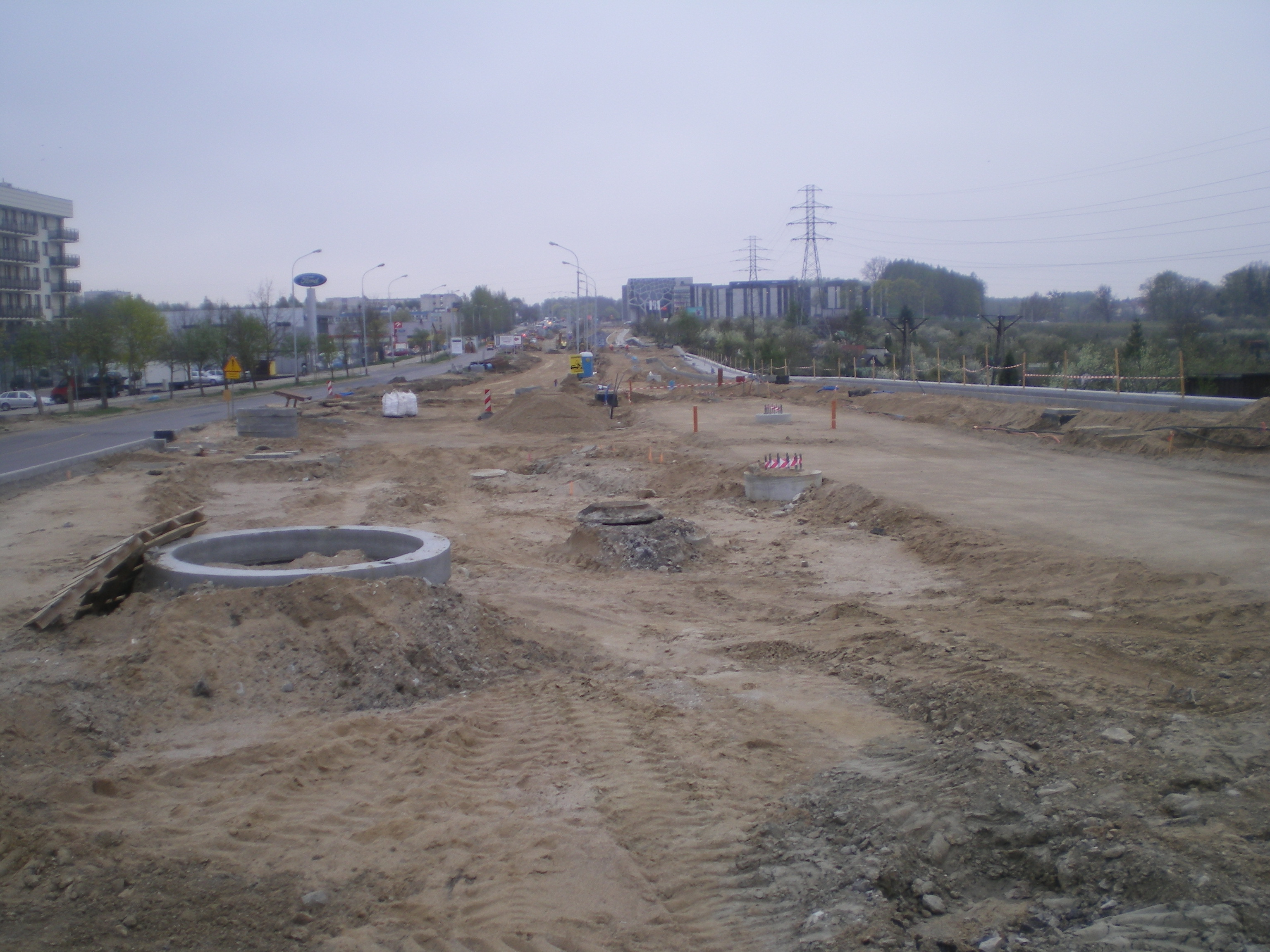 Budowa linii tramwajowej przy alei Sikorskiego (28 kwietnia 2015)