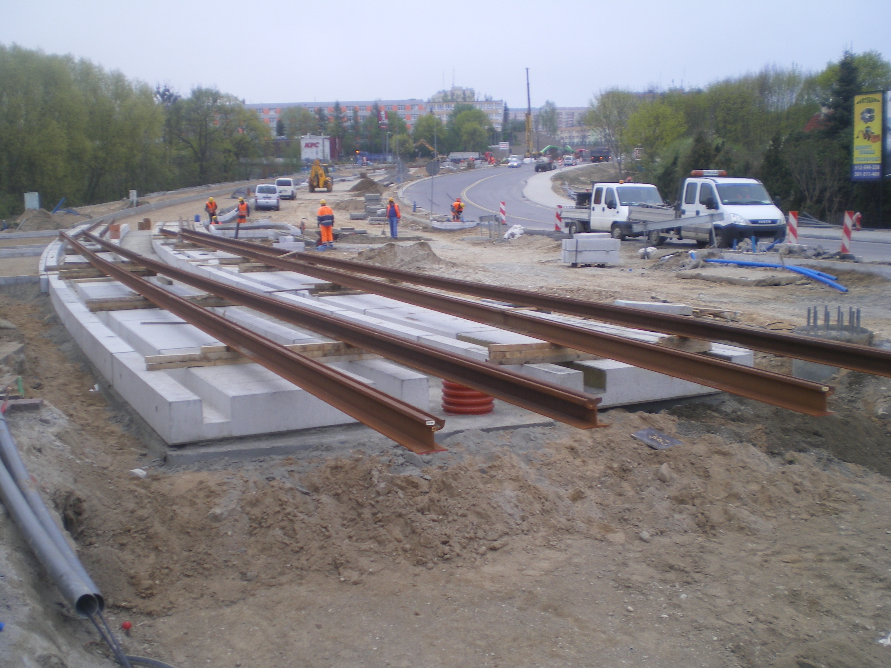 Budowa linii tramwajowej na skrzyżowaniu alej Sikorskiego i Obrońców Tobruku (28 kwietnia 2015) © OlsztyńskieTramwaje.pl