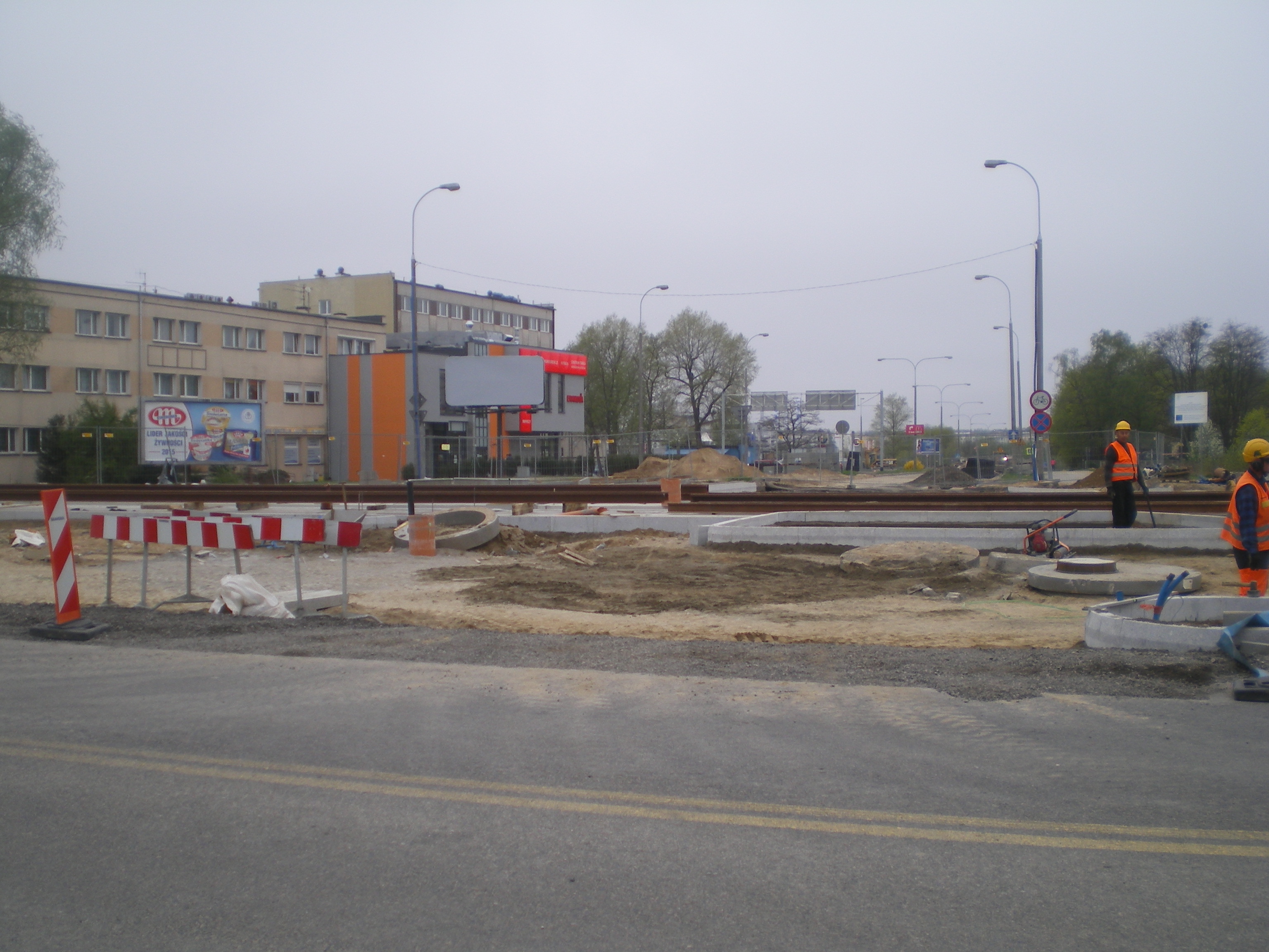 Budowa linii tramwajowej na skrzyżowaniu alej Sikorskiego i Obrońców Tobruku (28 kwietnia 2015) © OlsztyńskieTramwaje.pl