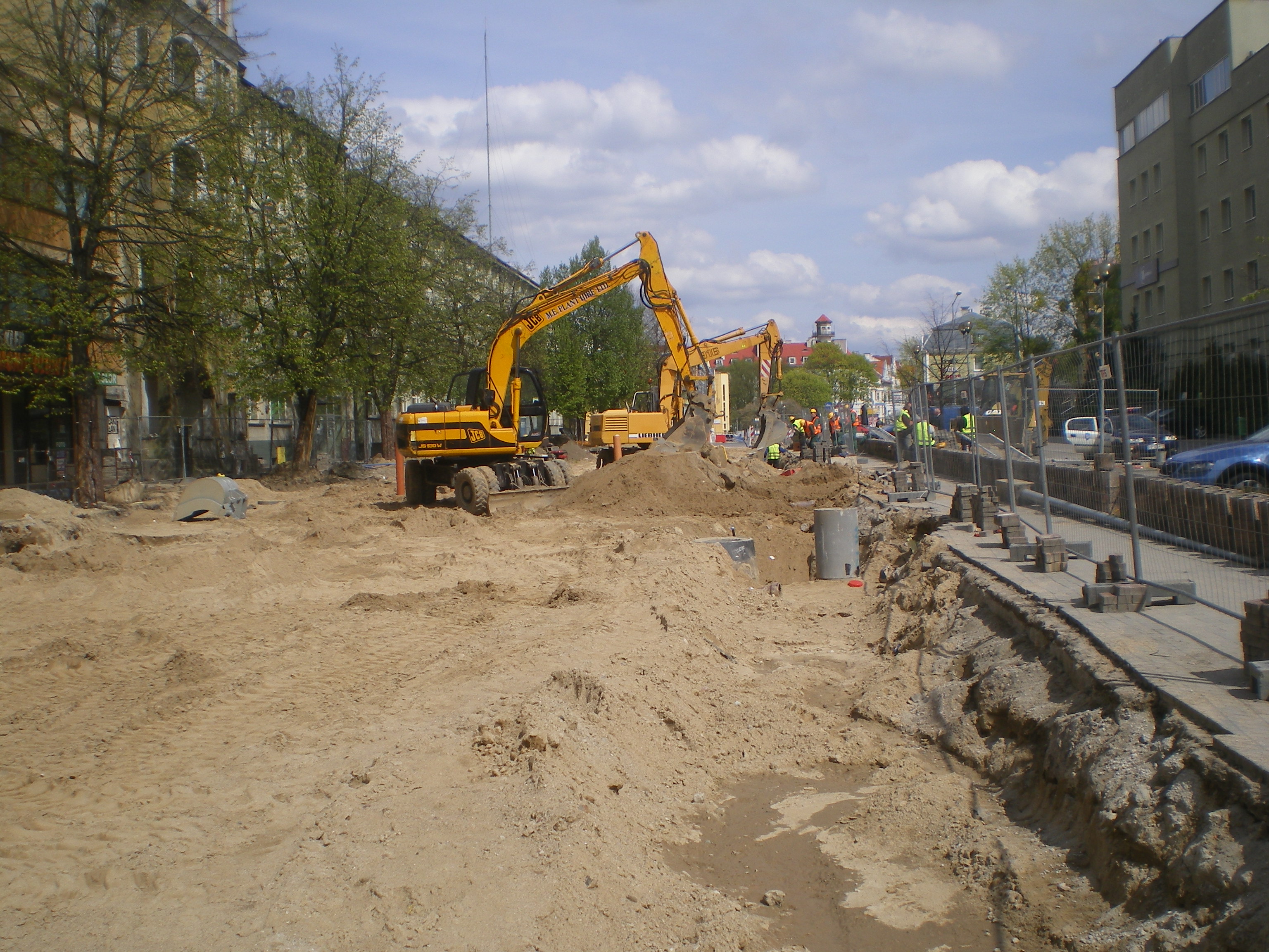 Budowa linii tramwajowej w ulicy Kościuszki (30 kwietnia 2015) © OlsztyńskieTramwaje.pl