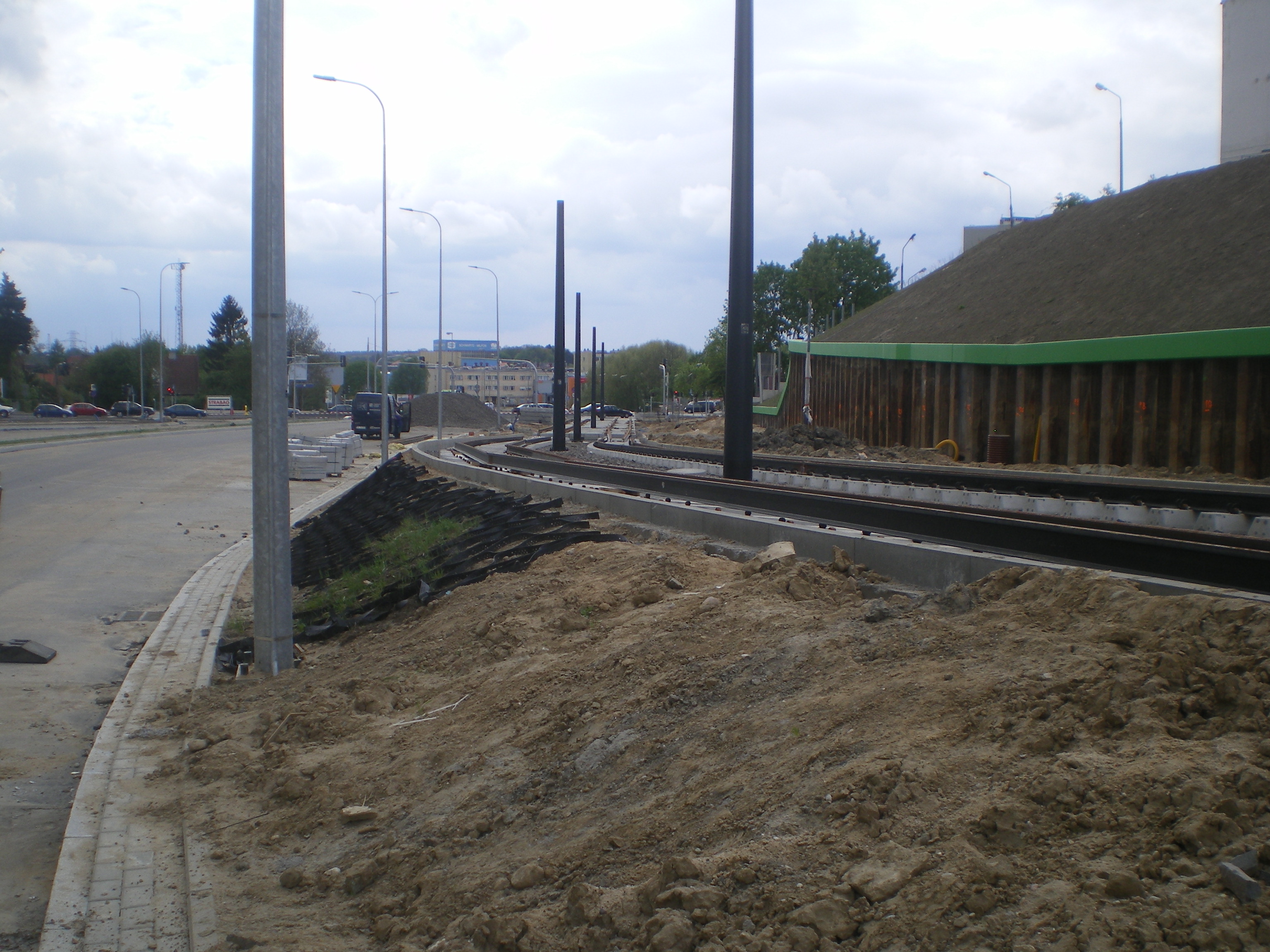 Budowa linii tramwajowej przy ulicy Obiegowej (10 maja 2015) © OlsztyńskieTramwaje.pl