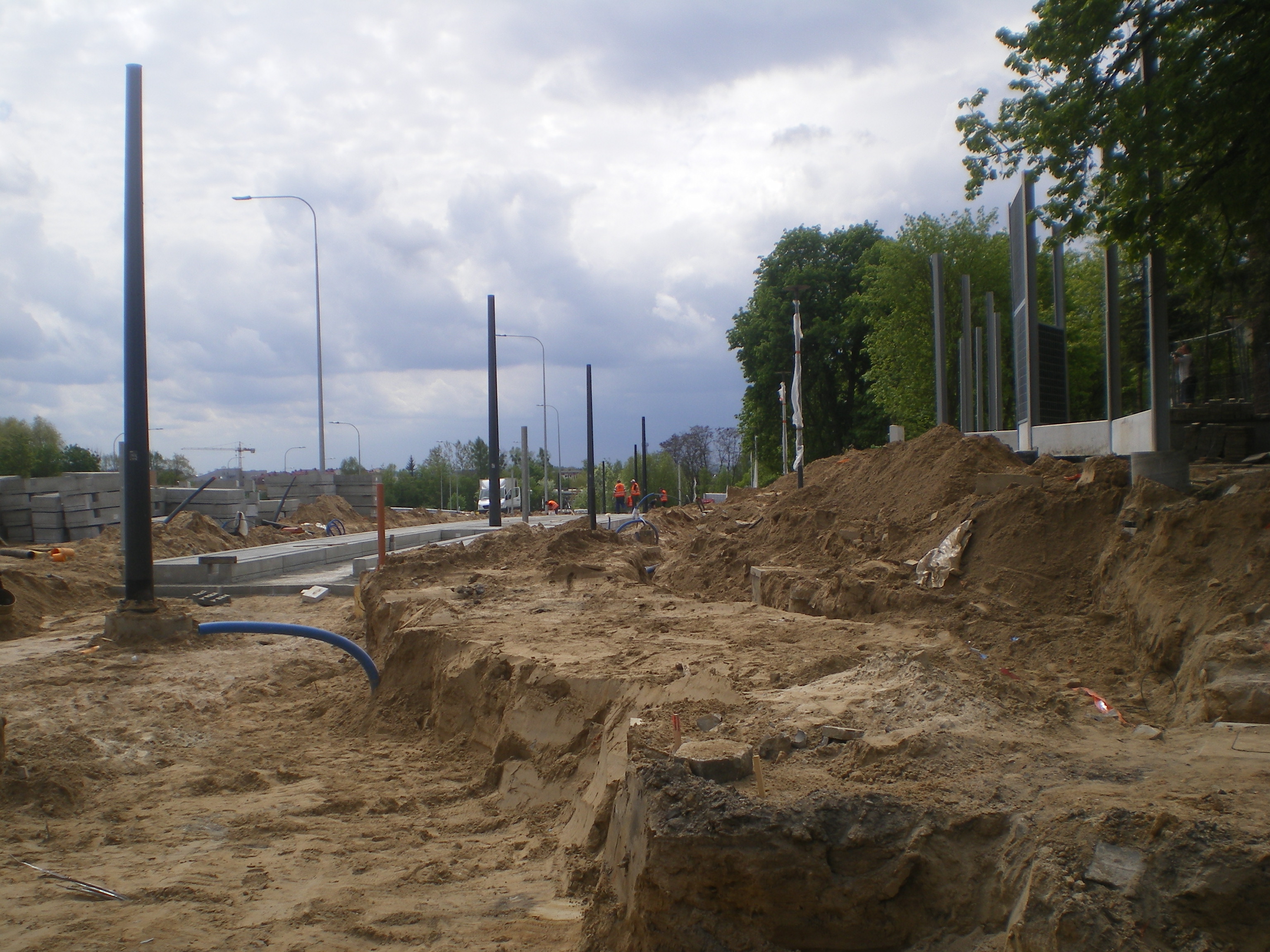 Budowa linii tramwajowej przy ulicy Obiegowej (10 maja 2015) © OlsztyńskieTramwaje.pl