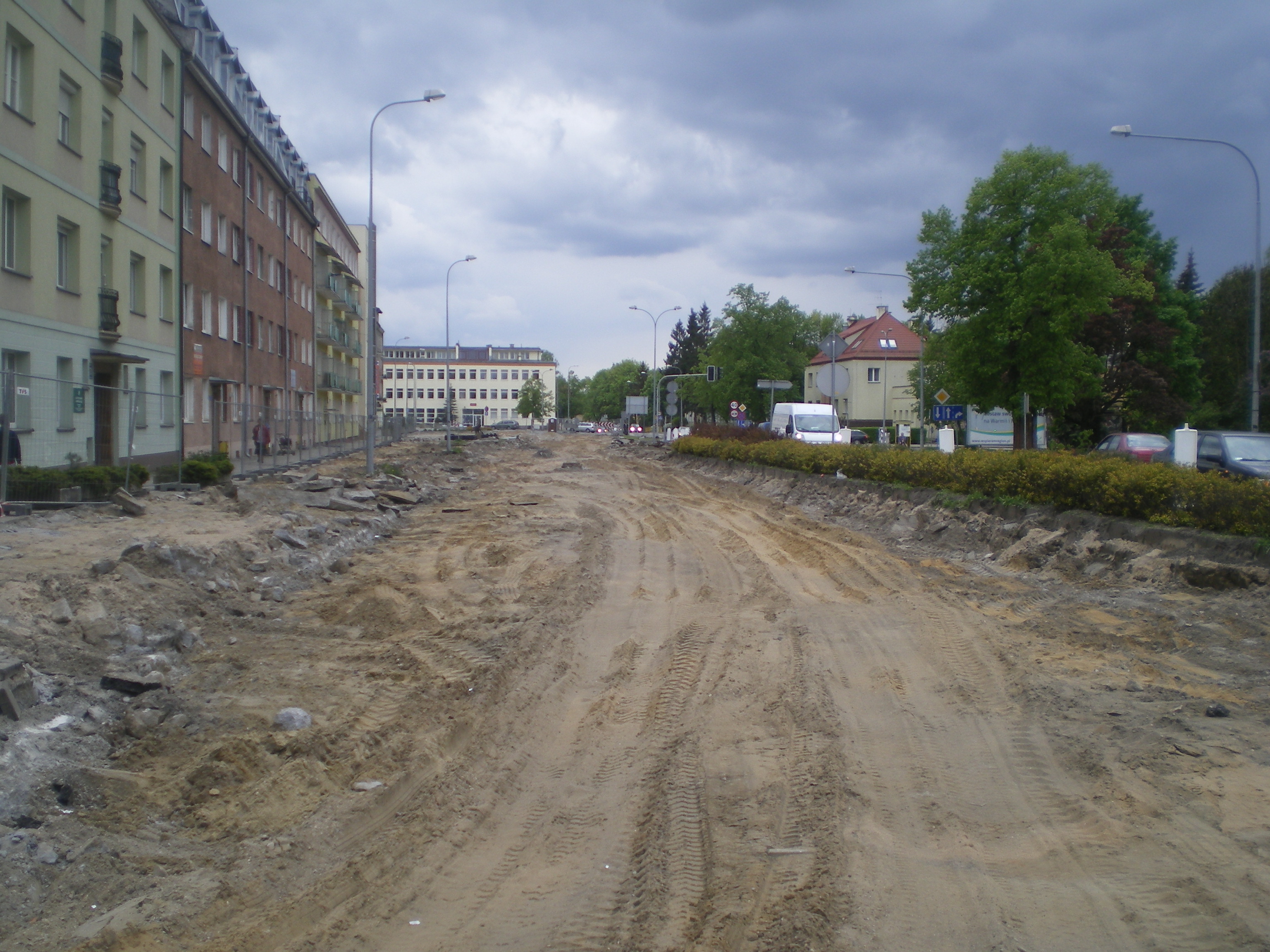 Budowa linii tramwajowej w ulicy Kościuszki (10 maja 2015) © OlsztyńskieTramwaje.pl