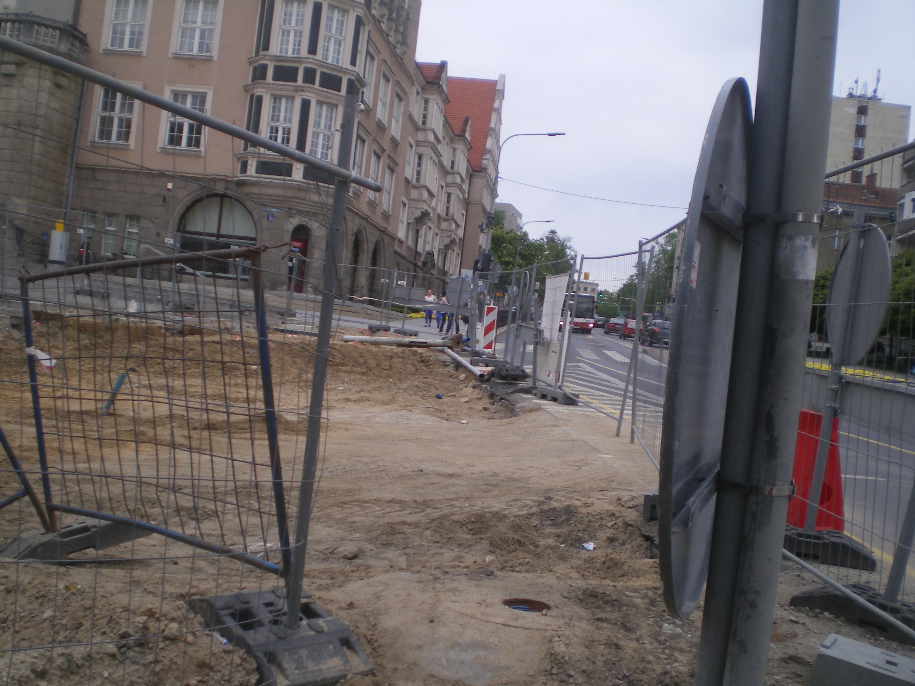 Budowa linii tramwajowej na placu Jana Pawła II (13 maja 2015) © OlsztyńskieTramwaje.pl