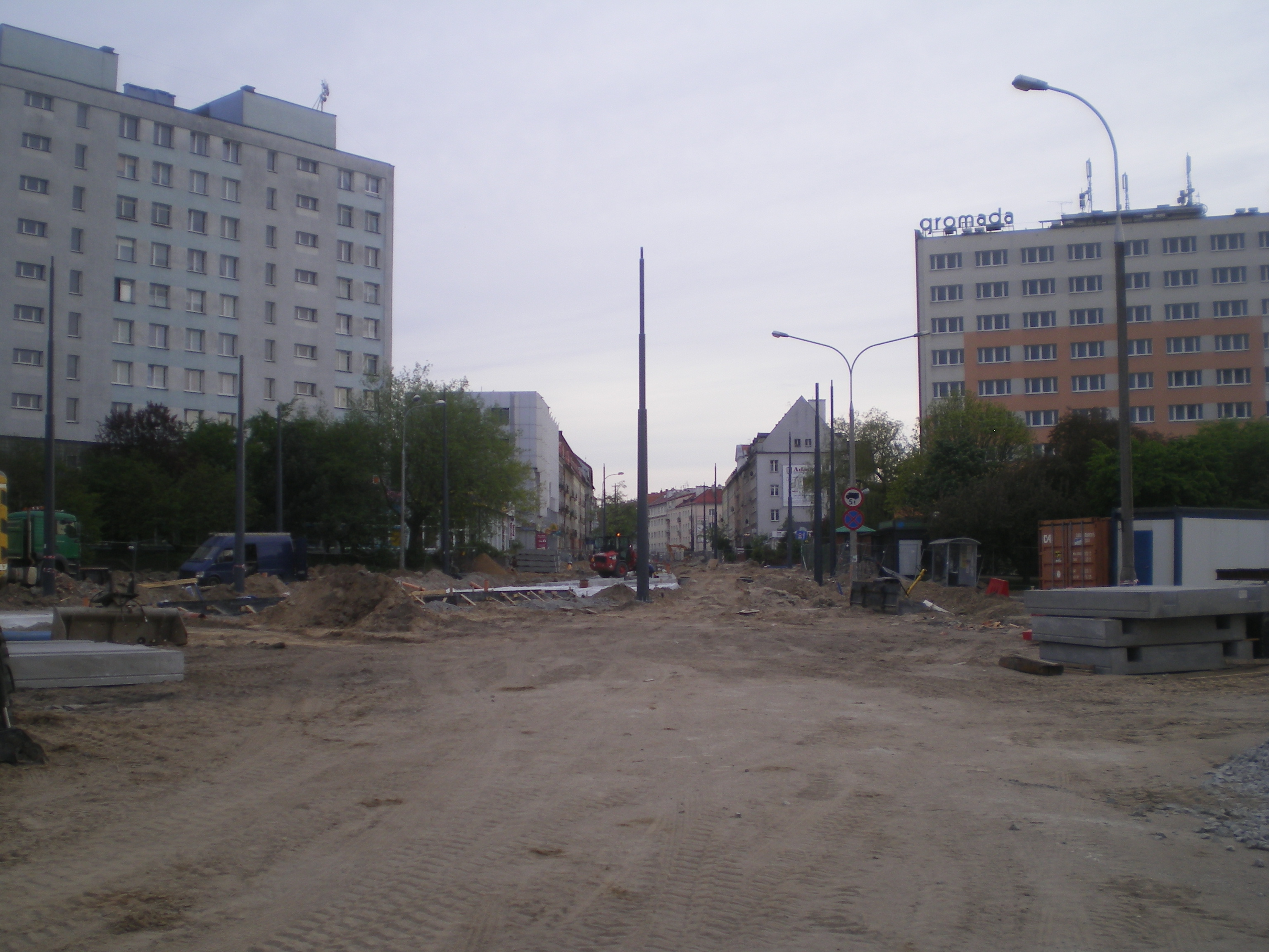 Budowa linii tramwajowej na placu Konstytucji 3 Maja (13 maja 2015) © OlsztyńskieTramwaje.pl