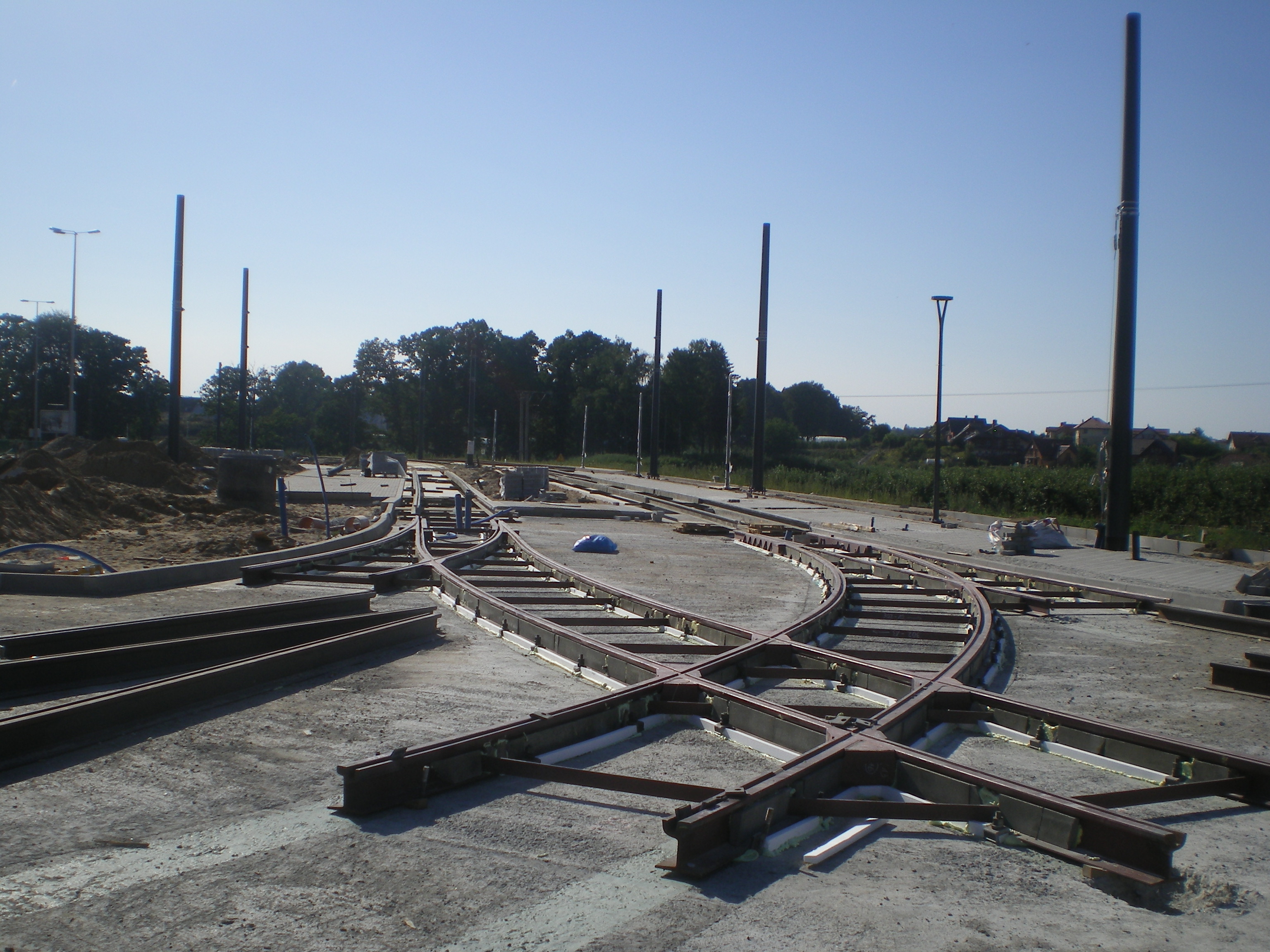 Budowa linii tramwajowej na skrzyżowaniu alei Sikorskiego z ulicami Tuwima i Synów Pułku (15 sierpnia 2015)