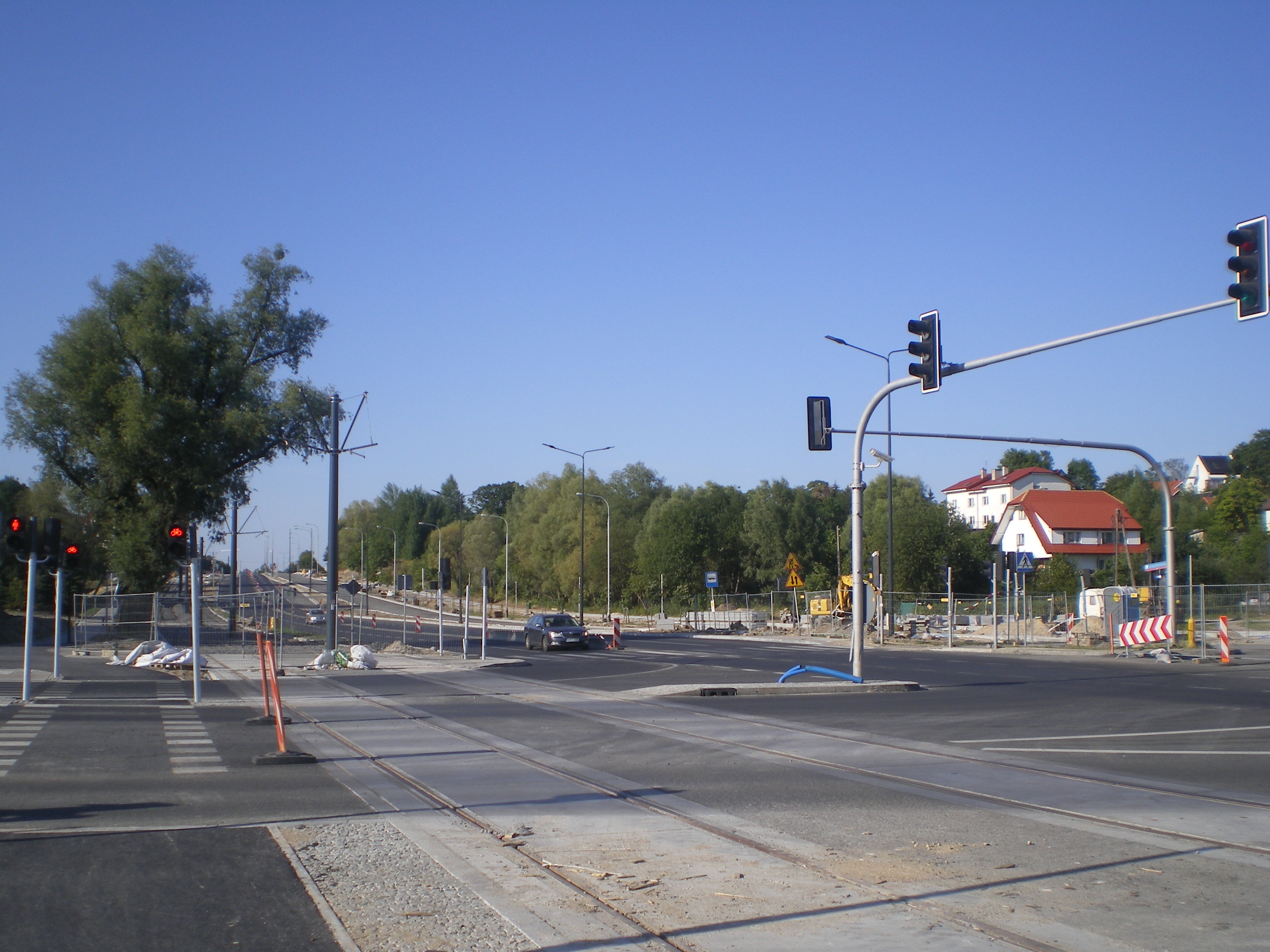 Budowa linii tramwajowej na skrzyżowaniu alei Sikorskiego z ulicami Płoskiego i Wilczyńskiego (15 sierpnia 2015) © OlsztyńskieTramwaje.pl