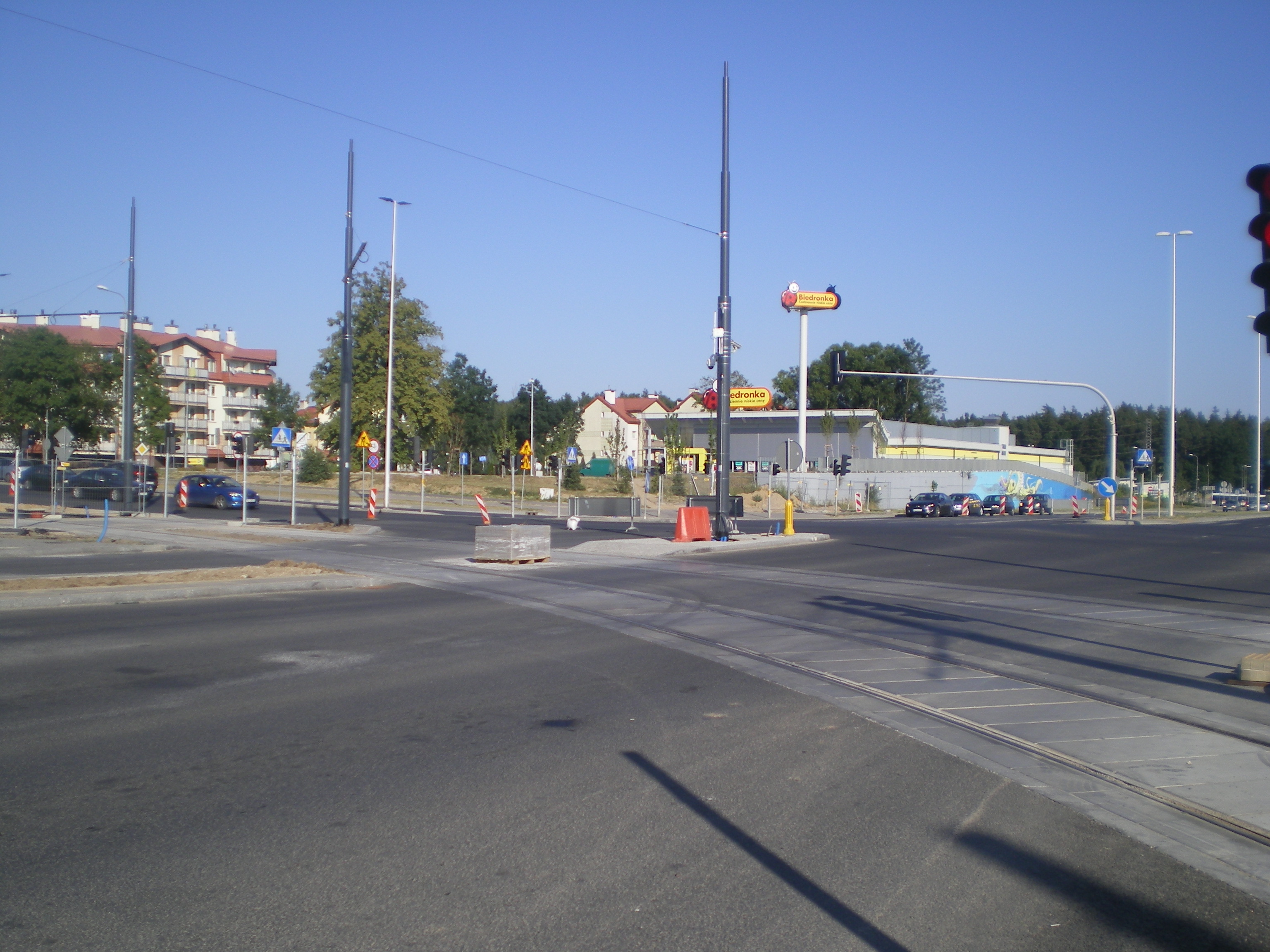 Budowa linii tramwajowej na skrzyżowaniu ulic Płoskiego, Witosa i Bukowskiego (15 sierpnia 2015) © OlsztyńskieTramwaje.pl