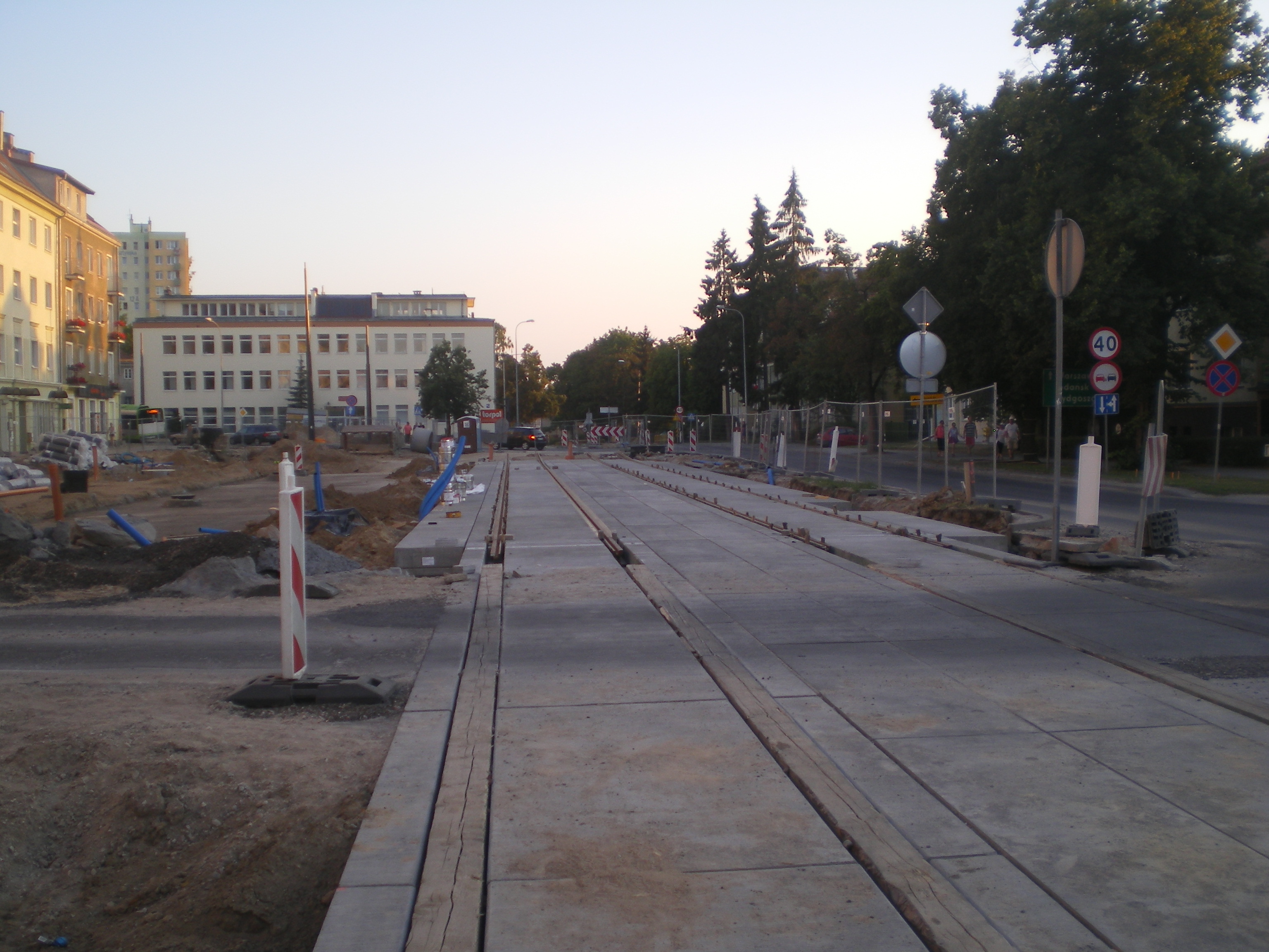 Budowa linii tramwajowej w ulicy Kościuszki (15 sierpnia 2015) © OlsztyńskieTramwaje.pl