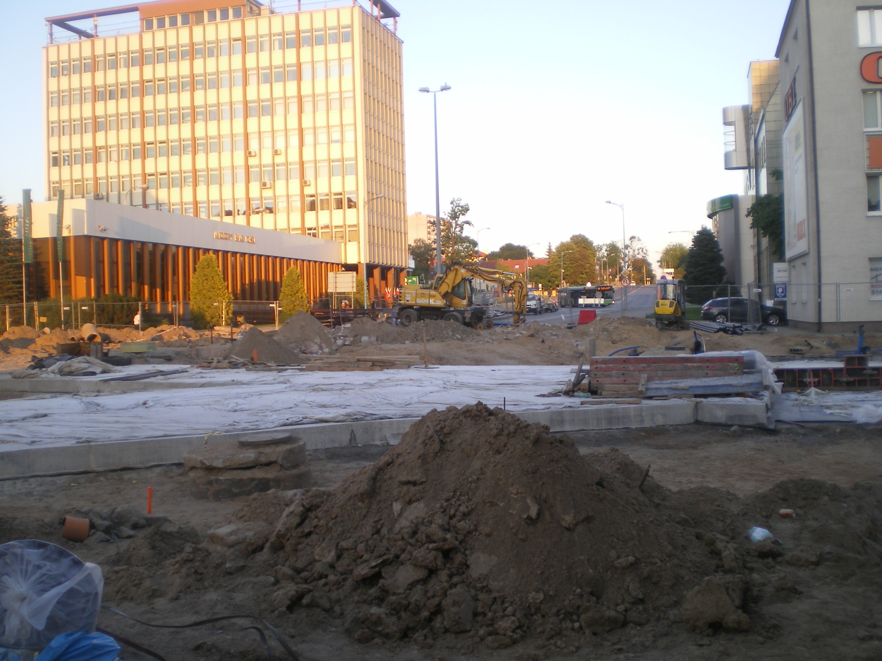 Budowa linii tramwajowej na skrzyżowaniu alei Piłsudskiego z ulicą Kościuszki (15 sierpnia 2015) © OlsztyńskieTramwaje.pl