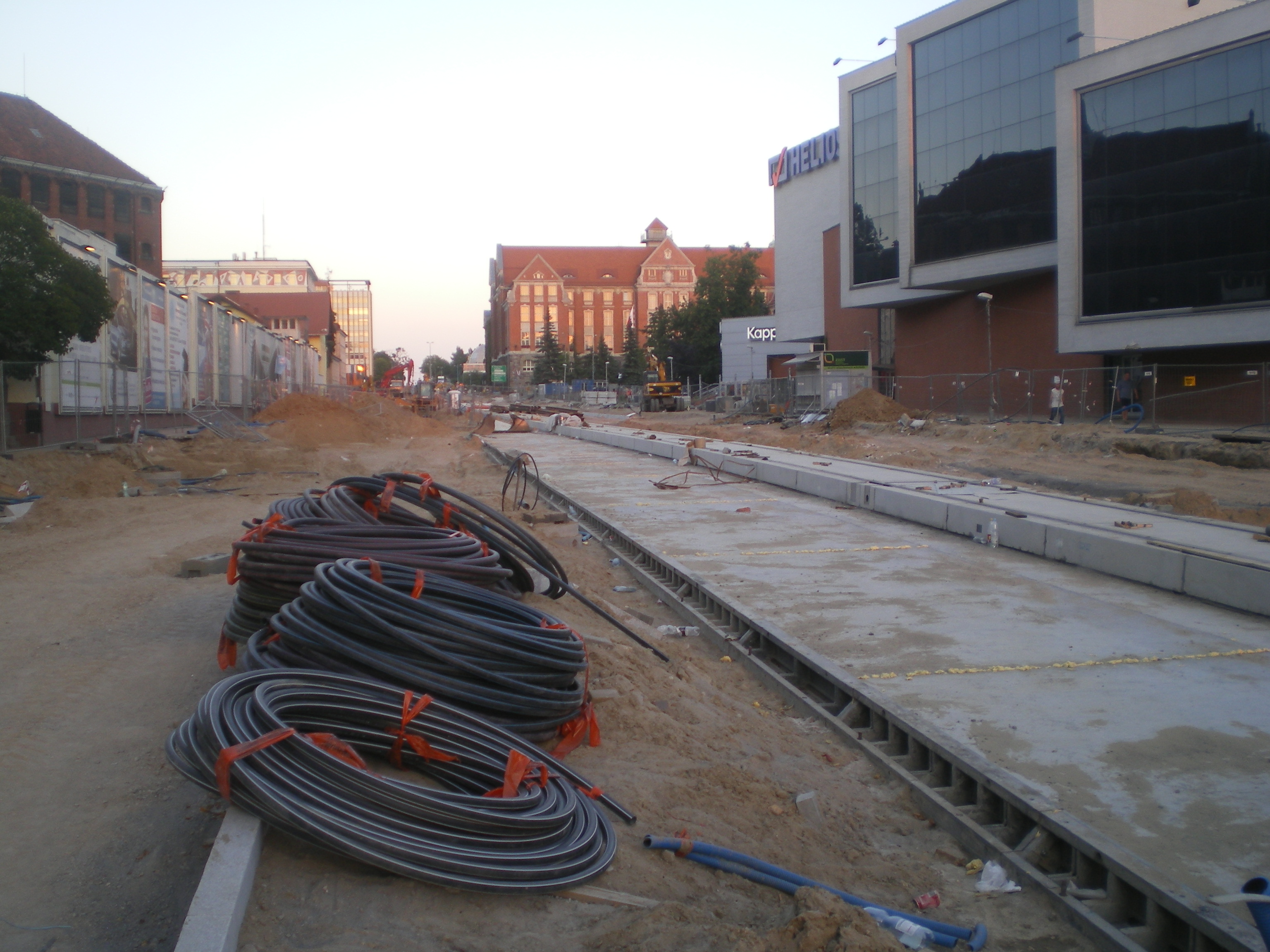Budowa linii tramwajowej w alei Piłsudskiego (15 sierpnia 2015) © OlsztyńskieTramwaje.pl