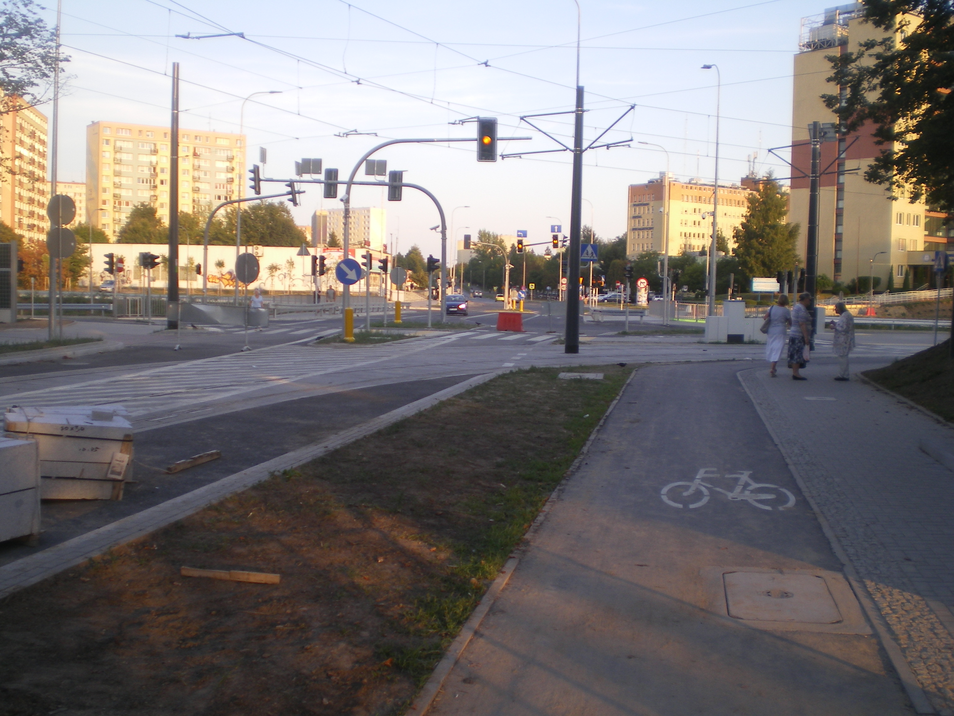 Budowa linii tramwajowej na skrzyżowaniu ulic Żołnierskiej i Obiegowej (31 sierpnia 2015) © OlsztyńskieTramwaje.pl