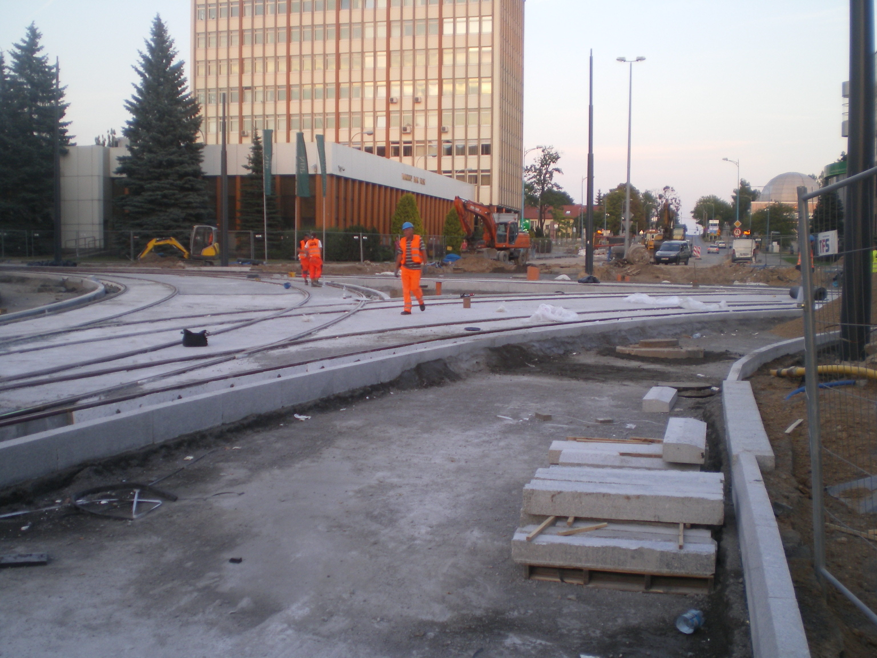 Budowa linii tramwajowej na skrzyżowaniu alei Piłsudskiego i ulicy Kościuszki (31 sierpnia 2015)