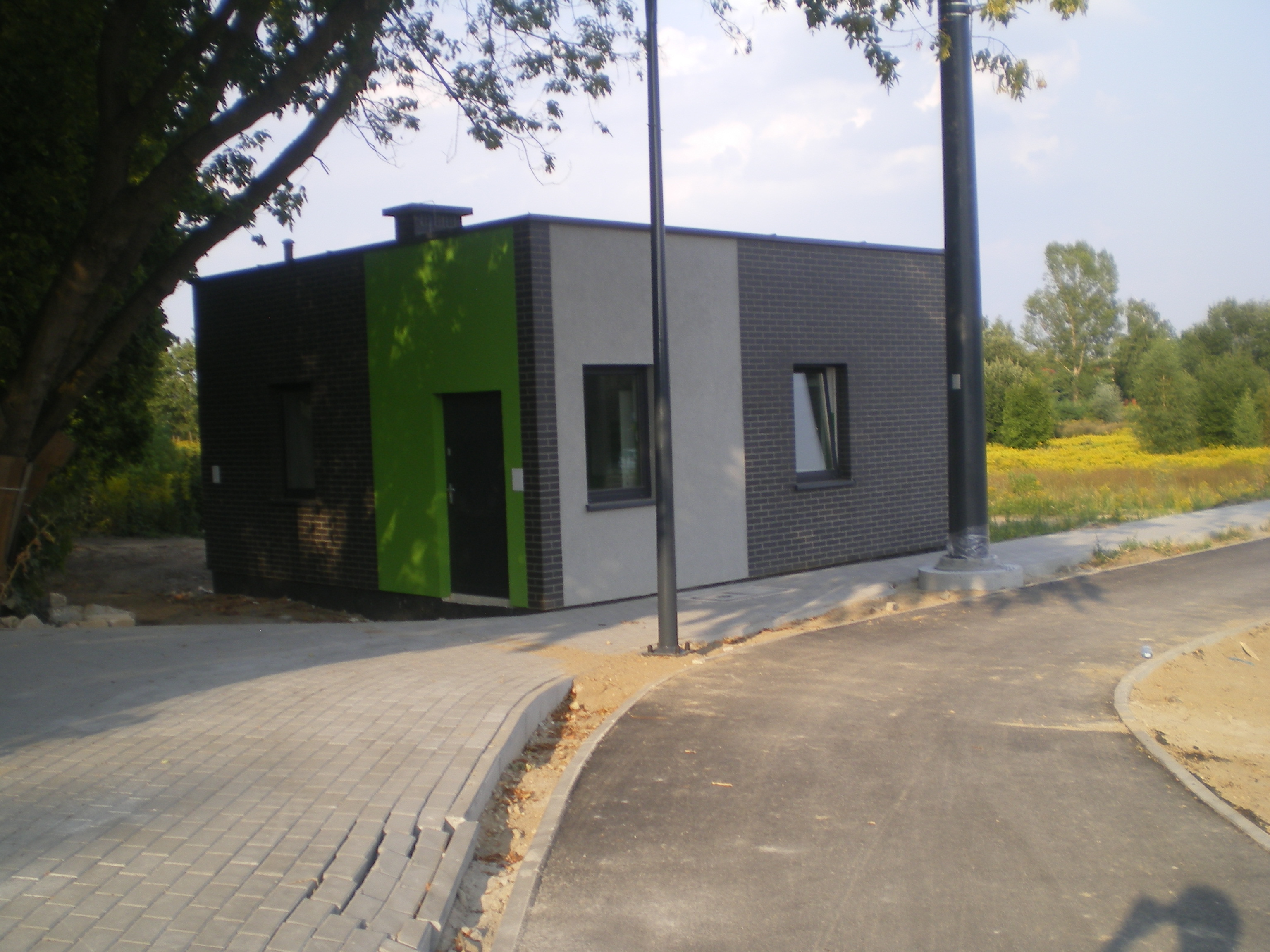 Budowa linii tramwajowej przy ulicy Tuwima (1 września 2015) – budynek socjalny dla motorniczych przy przystanku końcowym Uniwersytet-Prawocheńskiego © OlsztyńskieTramwaje.pl