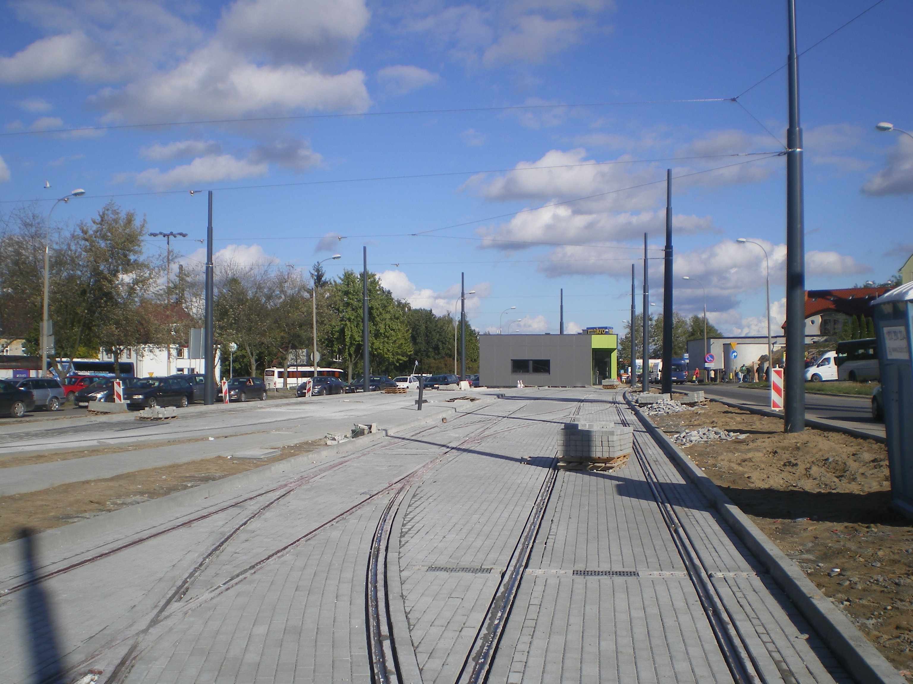 Budowa linii tramwajowej w ulicy Lubelskiej (21 września 2015) – tory odstawcze i budynek socjalny dla motorniczych przy przystanku końcowym Dworzec Główny © OlsztyńskieTramwaje.pl
