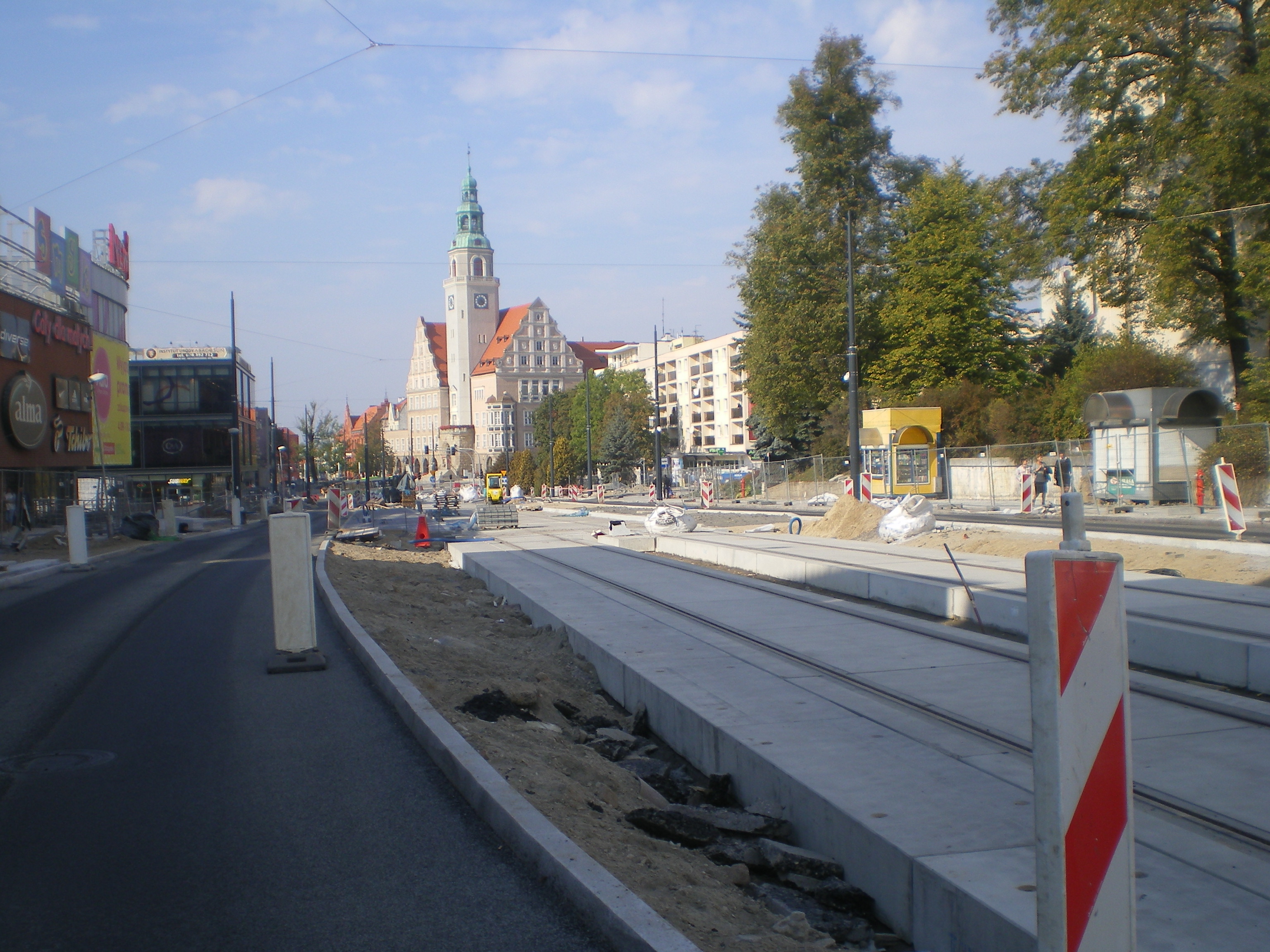 Budowa linii tramwajowej w alei Piłsudskiego (4 października 2015) – przystanek Centrum © OlsztyńskieTramwaje.pl
