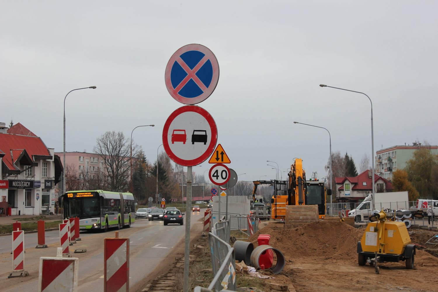 Budowa linii tramwajowej w ulicy Krasickiego, w pobliżu skrzyżowania z ulicami Sobocińskiego i Boenigka (14 listopada 2021) © OlsztyńskieTramwaje.pl
