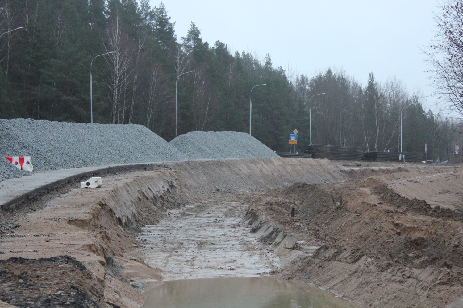 Budowa linii tramwajowej w ulicy Krasickiego, w pobliżu V Liceum Ogólnokształcącego (15 stycznia 2023) © OlsztyńskieTramwaje.pl