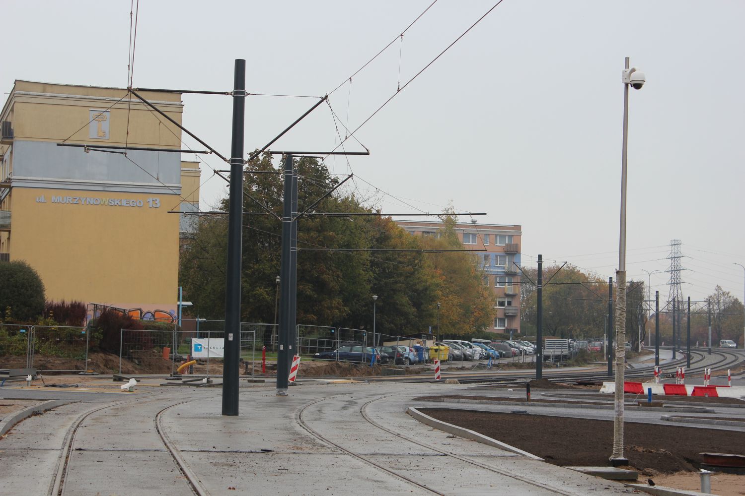 Budowa linii tramwajowej w ulicy Krasickiego, na skrzyżowaniu z ulicą Wańkowicza (22 października 2023) © OlsztyńskieTramwaje.pl