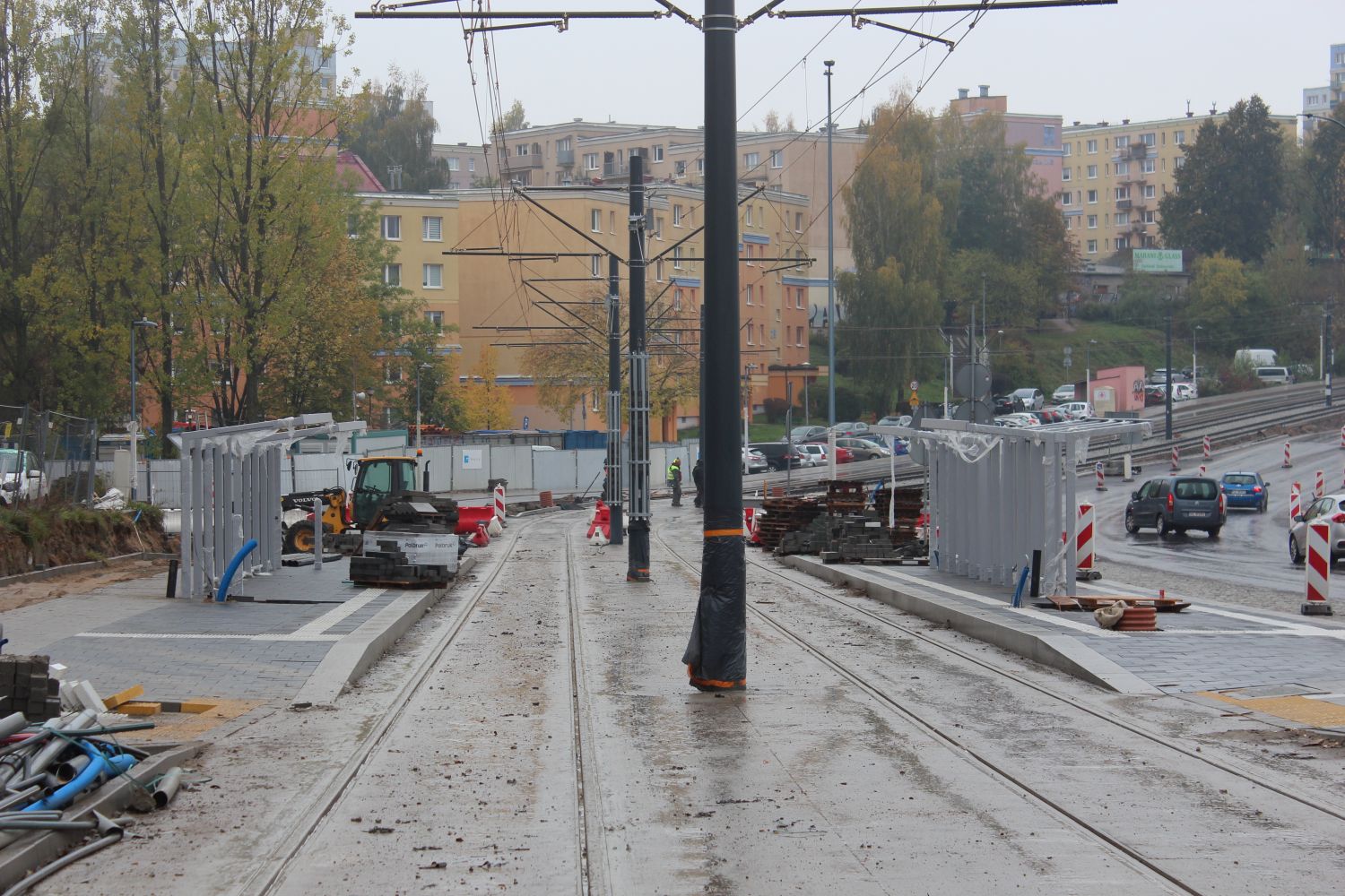 Budowa linii tramwajowej w ulicy Krasickiego – przystanek Carrefour (22 października 2023) © OlsztyńskieTramwaje.pl