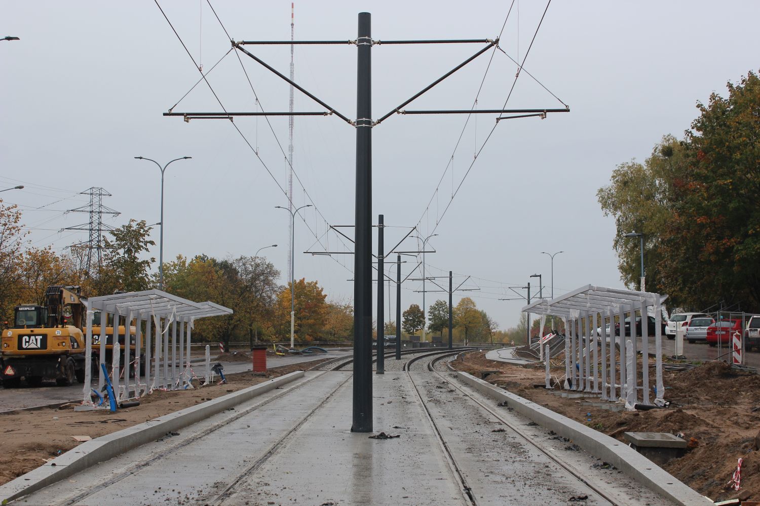 Budowa linii tramwajowej w ulicy Krasickiego – przystanek Murzynowskiego (22 października 2023) © OlsztyńskieTramwaje.pl
