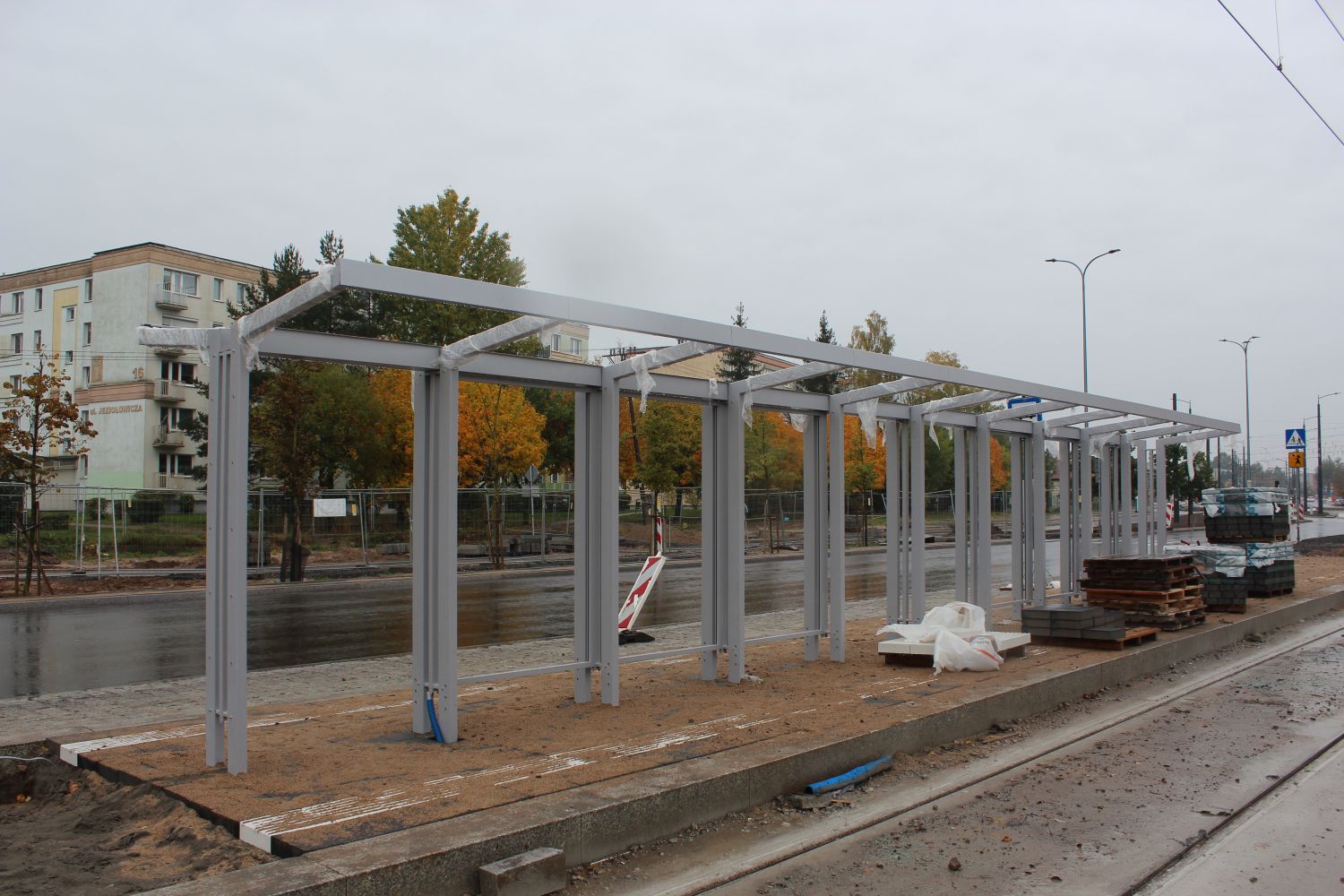 Budowa linii tramwajowej w ulicy Krasickiego – przystanek Boenigka (22 października 2023)© OlsztyńskieTramwaje.pl