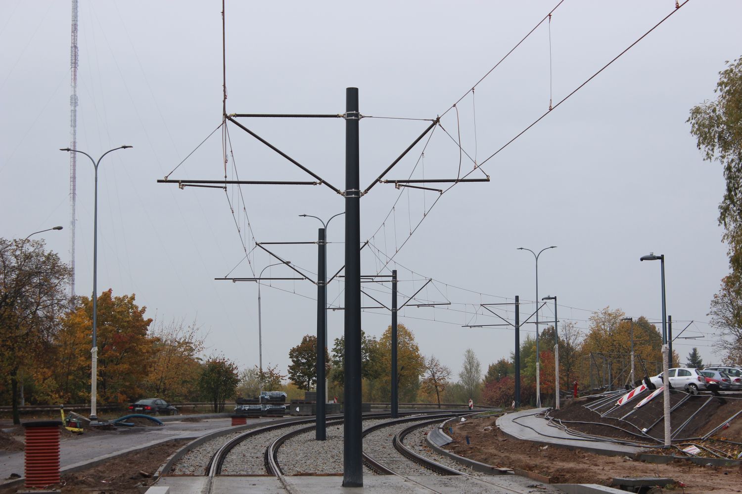 Budowa linii tramwajowej w ulicy Krasickiego – przystanek Murzynowskiego (22 października 2023) © OlsztyńskieTramwaje.pl