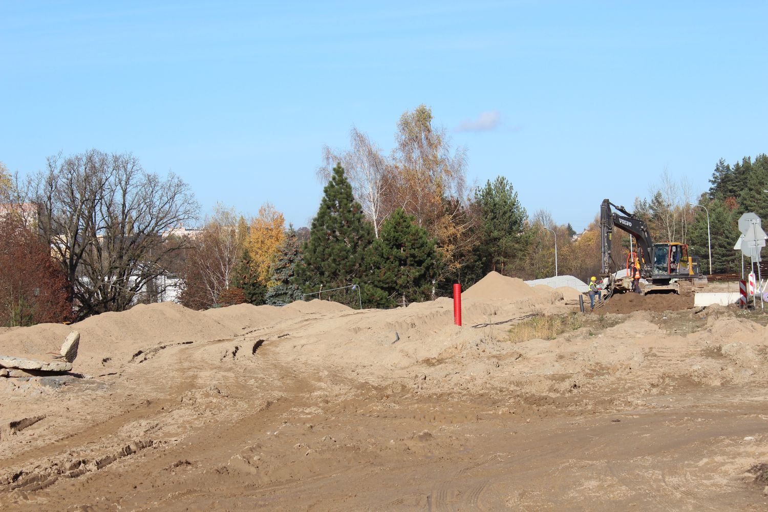 Budowa linii tramwajowej w ulicy Krasickiego, w pobliżu przyszłej stacji prostownikowej (3 listopada 2022) © OlsztyńskieTramwaje.pl
