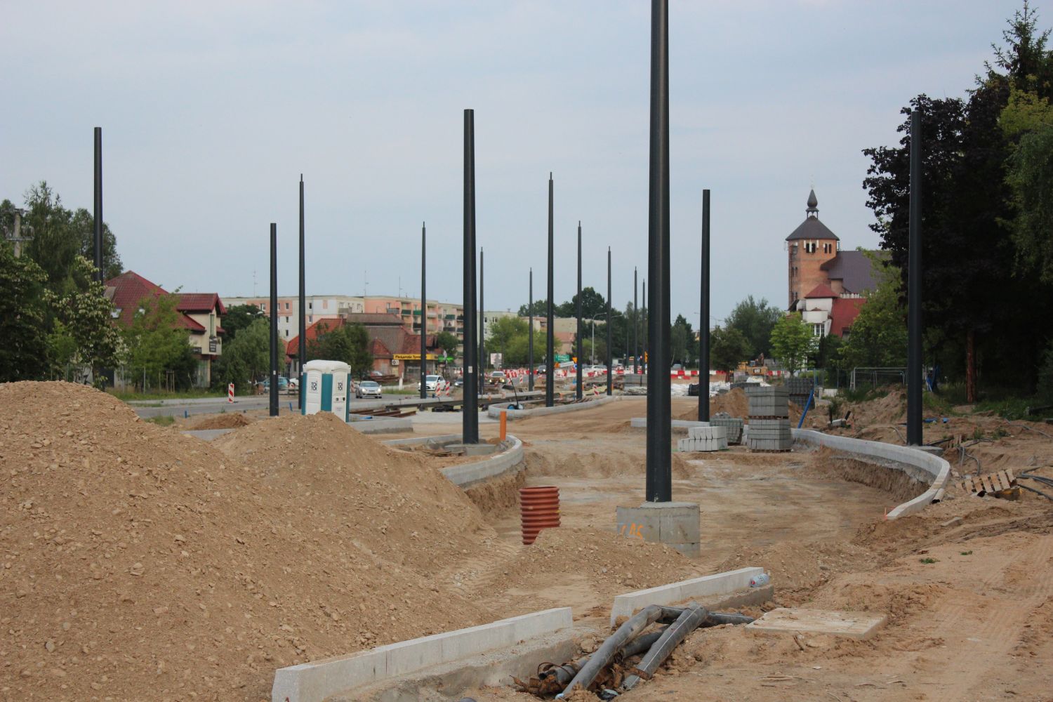 Budowa linii tramwajowej w ulicy Krasickiego, w pobliżu przystanku Boenigka (5 lipca 2023)